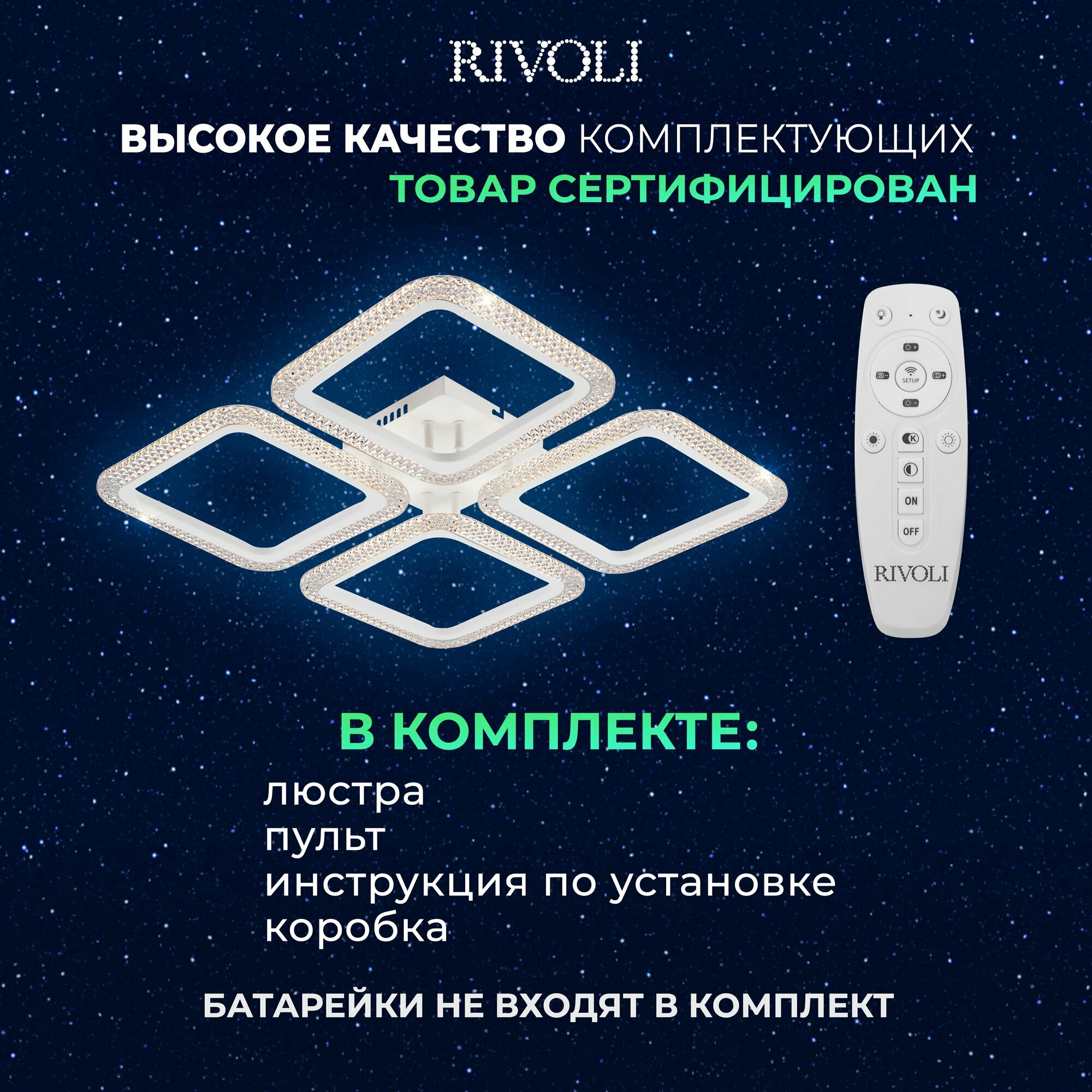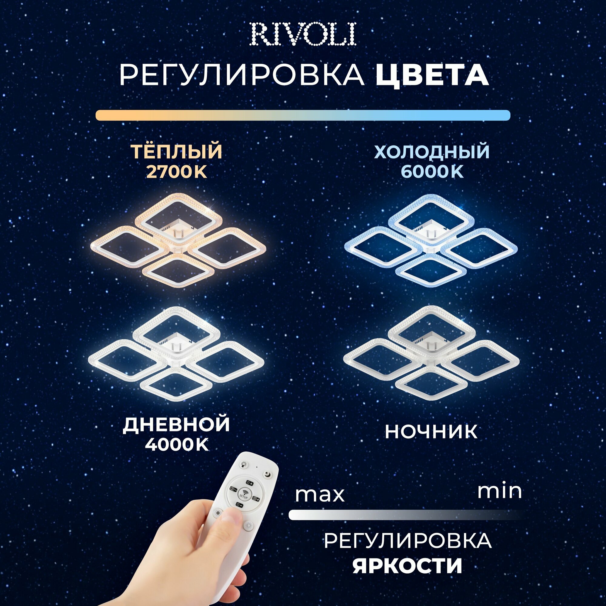 СохранитьСветильник потолочный светодиодный Rivoli Nikki 104 Вт 2700К - 6000К 26м2 с пультом ДУ белый интересное: