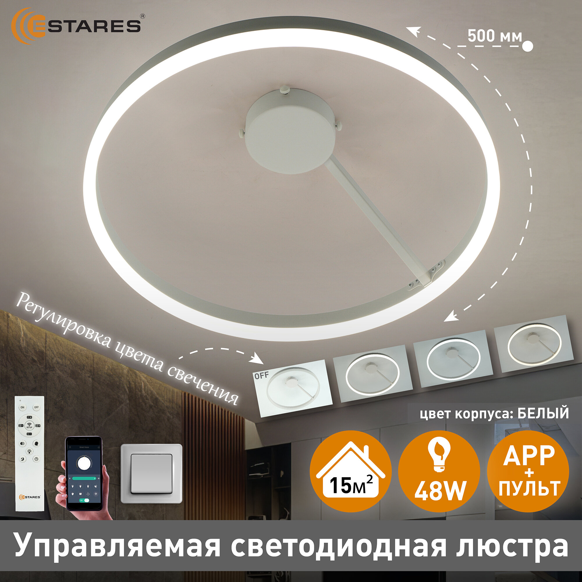 Управляемая светодиодная люстра Милагра 48вт БЕЛАЯ, площадь освещения 15м² интересное: