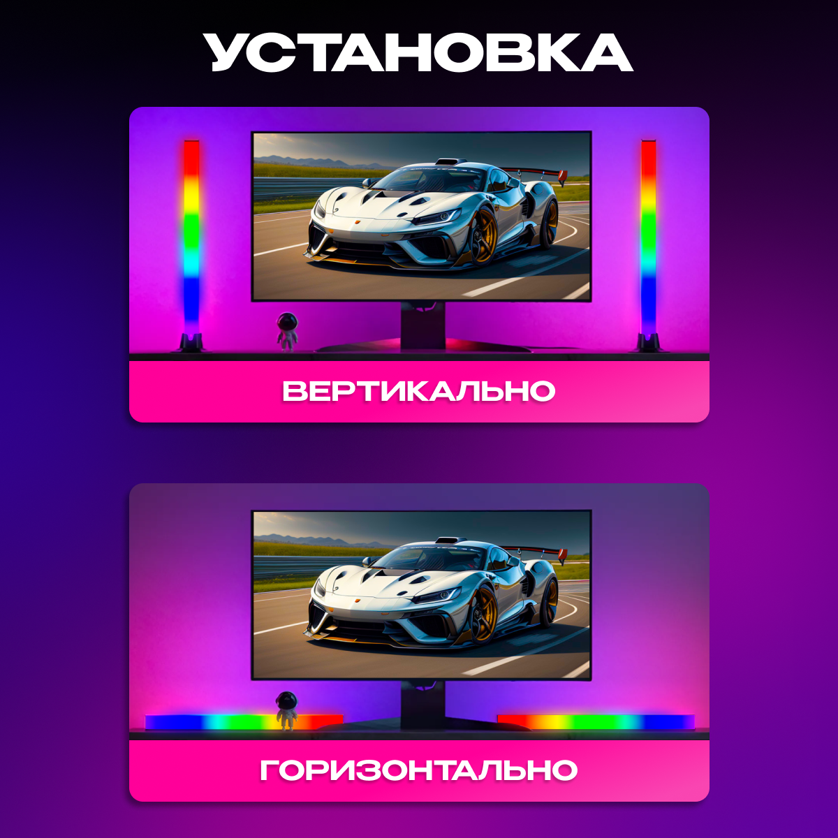 Неоновые настольные светильники RGB IC Pro с пультом, 2 штуки, 42см