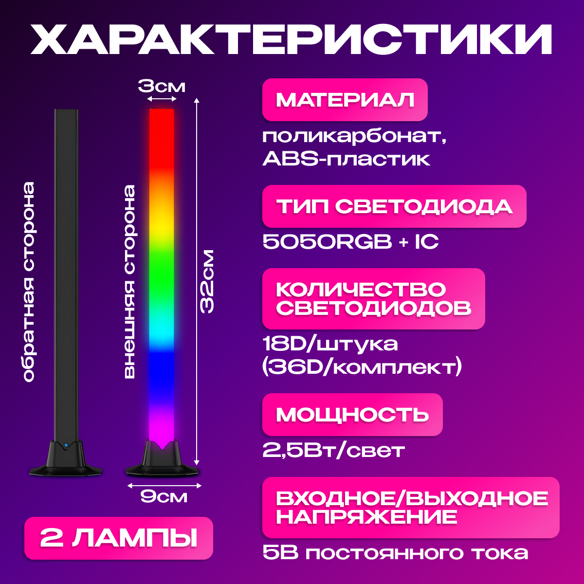 Неоновые настольные светильники RGB IC Pro с пультом, 2 штуки, 32см