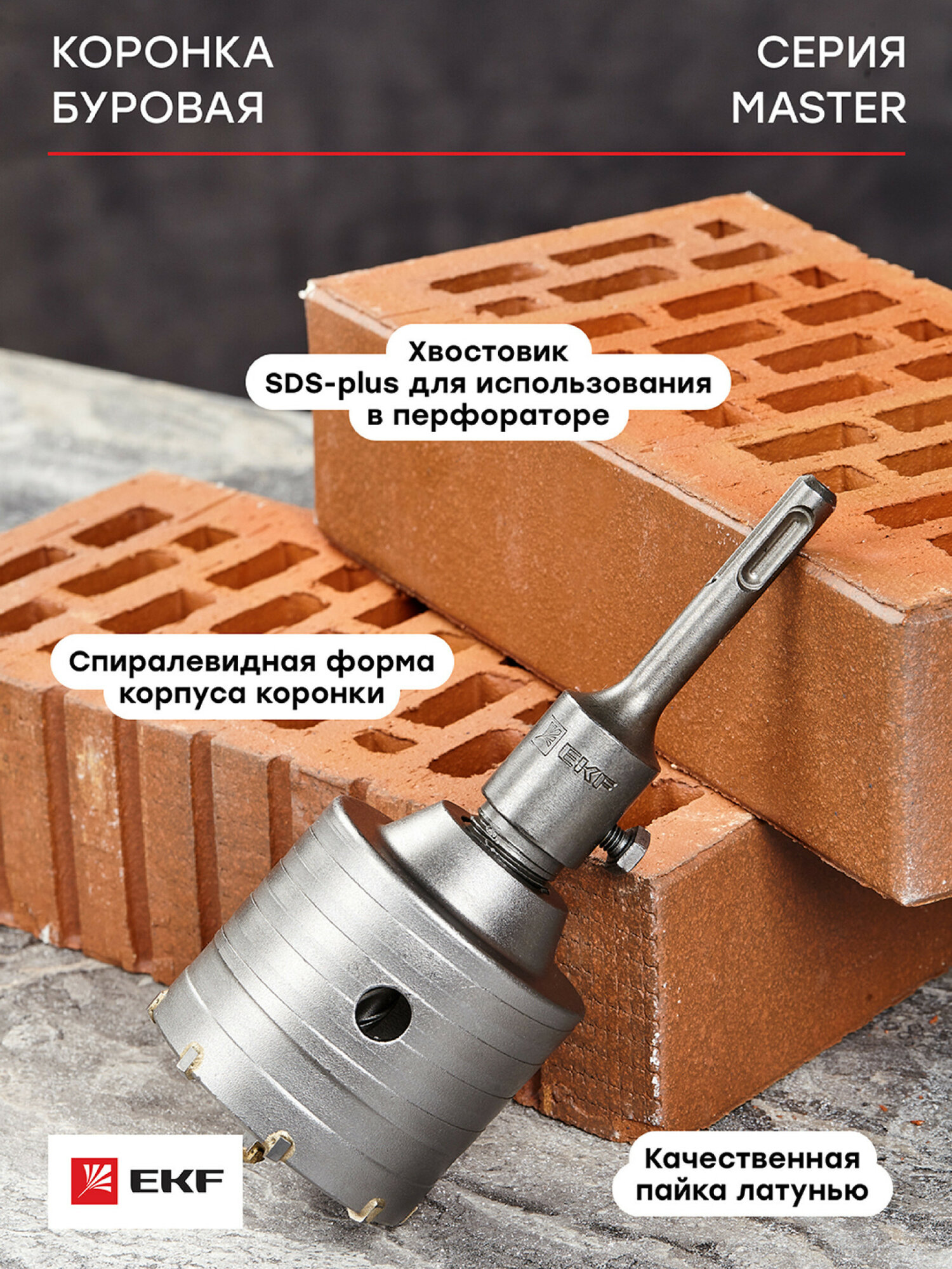 СохранитьКоронка буровая твердосплавная с оснасткой TCT-68 М22 SDS-plus EKF Master интересное: