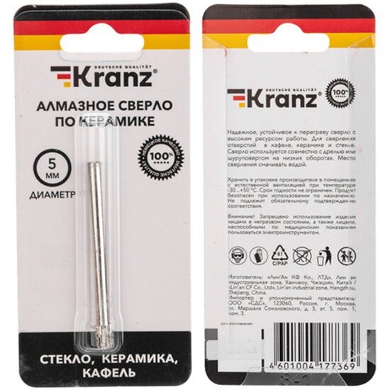 Алмазное сверло по керамограниту, керамике и стеклу KRANZ KR-92-0000 интересное: