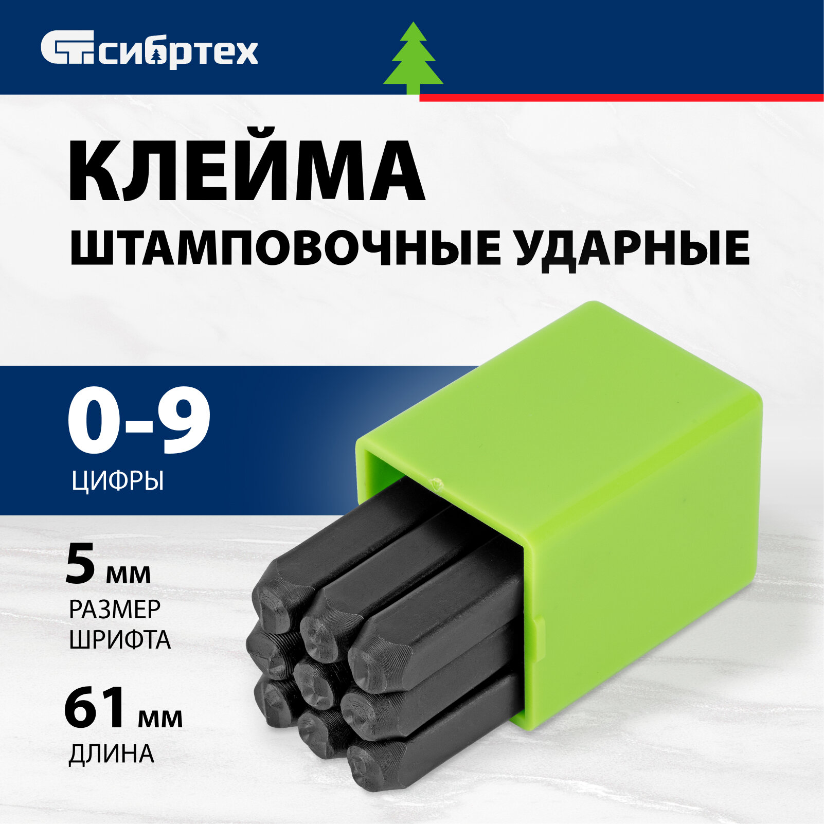 Клейма штамповочные, ударные, цифровые, 5 мм Сибртех