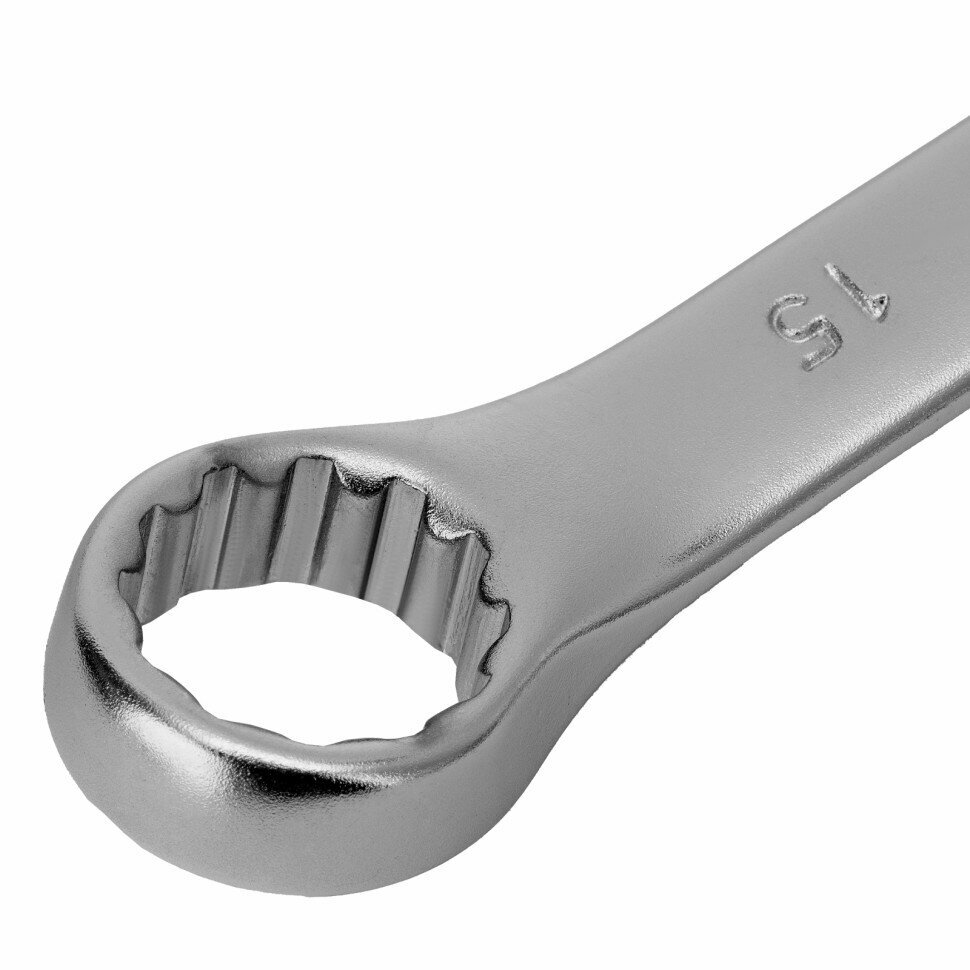 Ключ комбинированный, 15 мм, CrV, матовый хром Stels