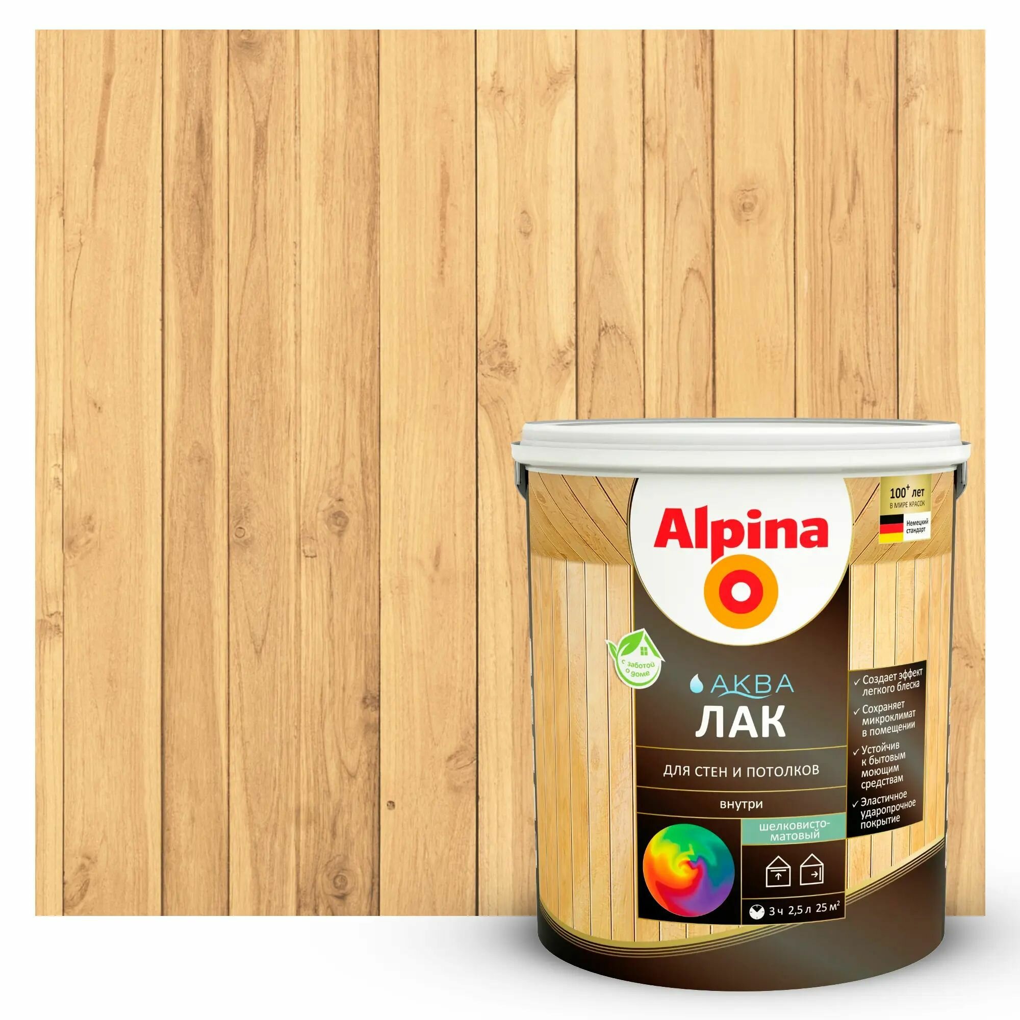 Аква Лак для стен и потолков шелковисто-матовый Alpina прозрачный 2,5 л интересное: