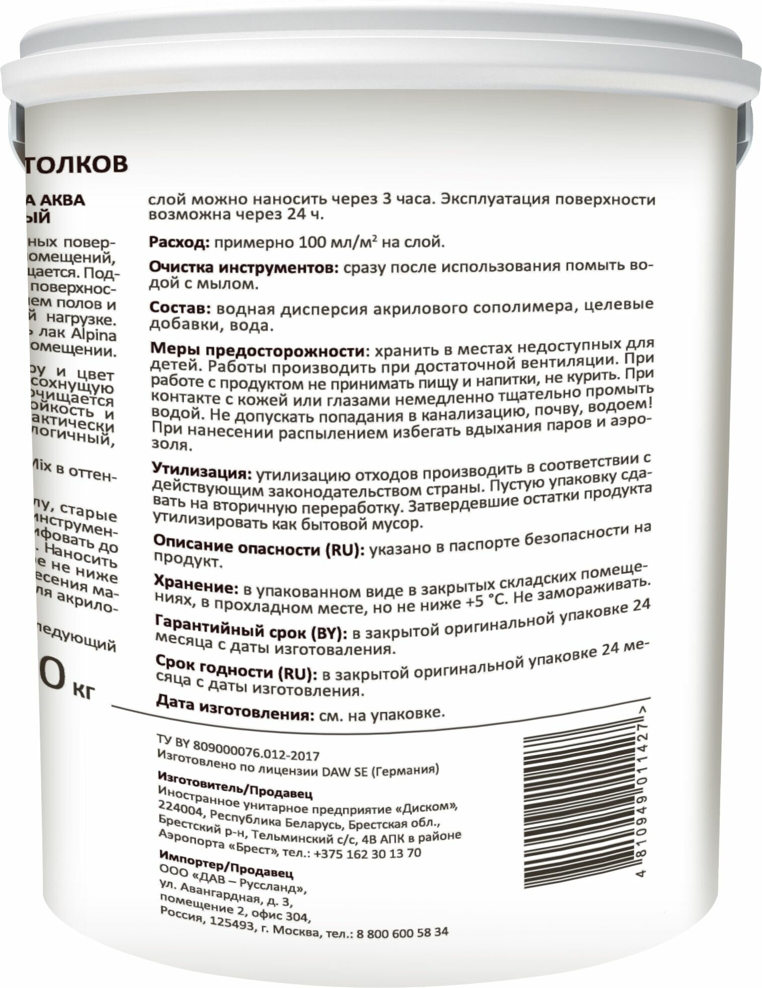 "Alpina Аква" - лак для стен и потолка, акриловый шелковисто-матовый 10 л
