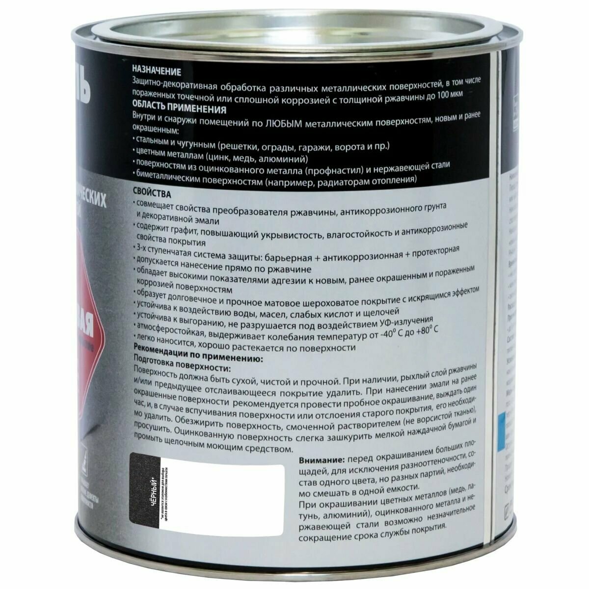 Краска по металлу по ржавчине 3в1 Графитовая черная 2л