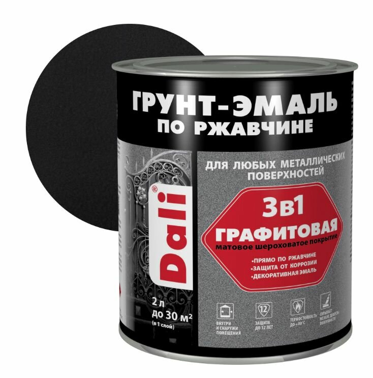 Купить Грунт-эмаль по ржавчине Dali 3в1 графитовая чёрная 2 л