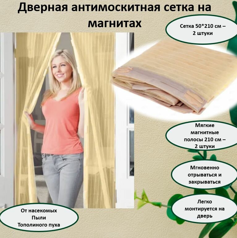 Дверная антимоскитная сетка на магнитах 1м *2.1 м бежевая интересное: