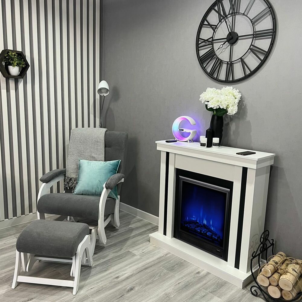 Камин электрический ELEKAM SILVER белый с очагом с пультом, обогревом и звуком потрескивания дров (Электрокамин)