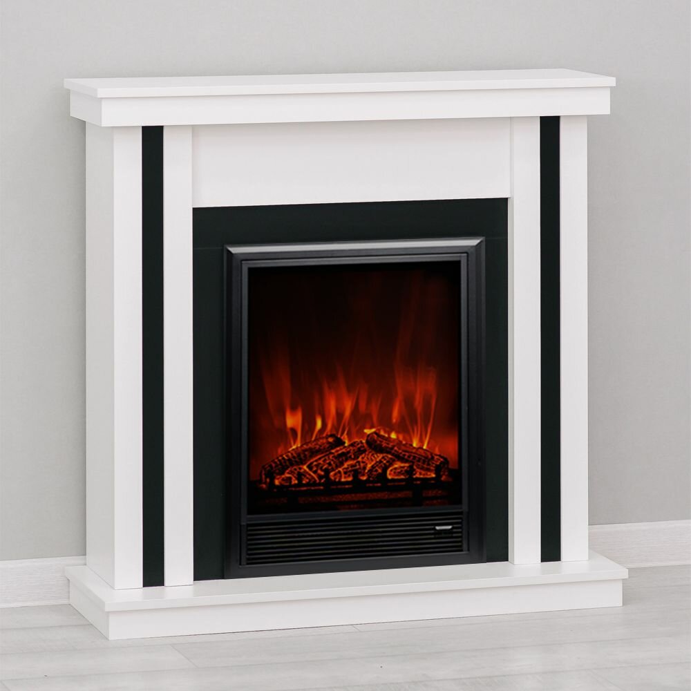 Купить Электрический камин ELEKAM NEO белый+чёрный с очагом Vegas с обогревом, пультом управления и потрескиванием дров
