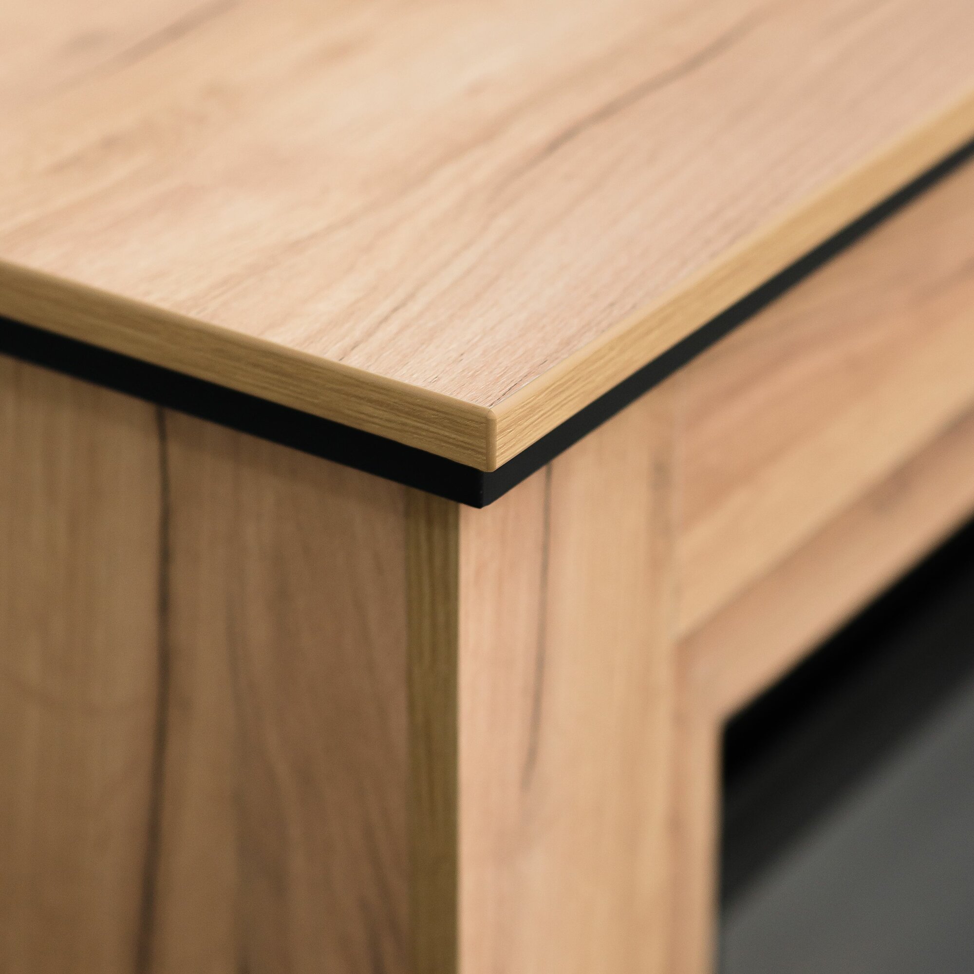 Камин электрический ELEKAM Silver дуб золотой с очагом Velar с пультом, обогревом и звуком потрескивания дров (Электрокамин)