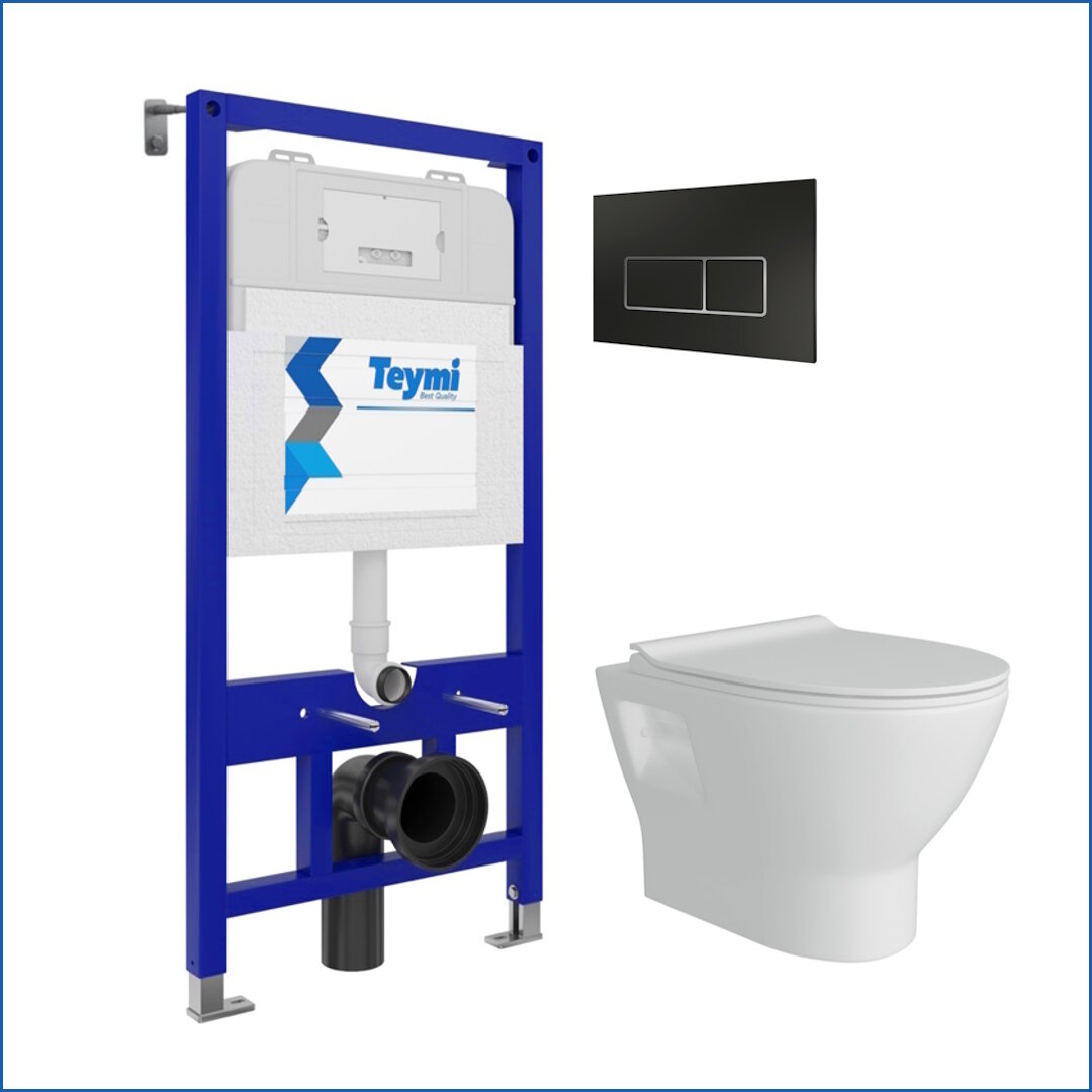 Комплект Teymi "Готовое решение": Инсталляция Aina 52 + клавиша смыва Kati черная + унитаз Ritta F00374
