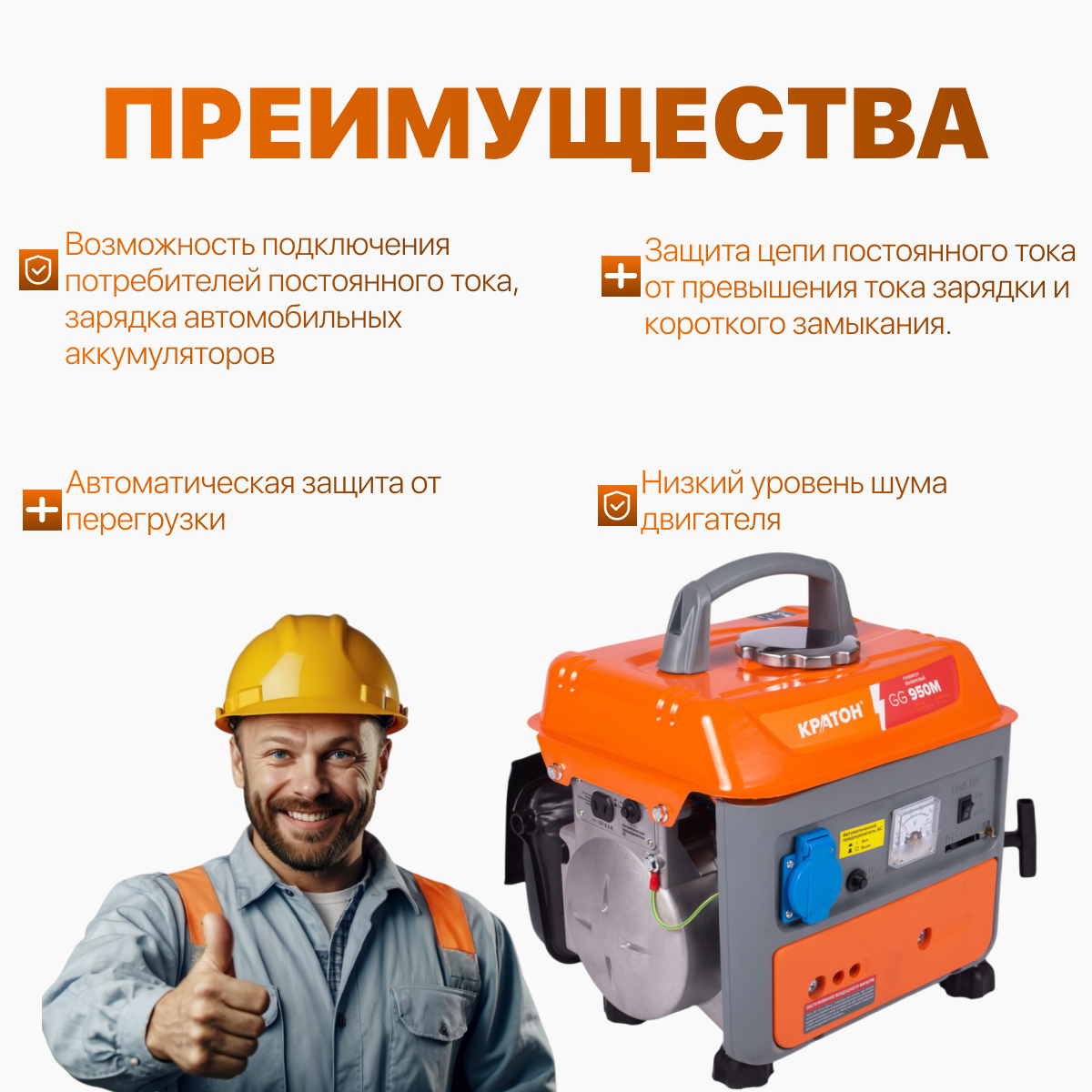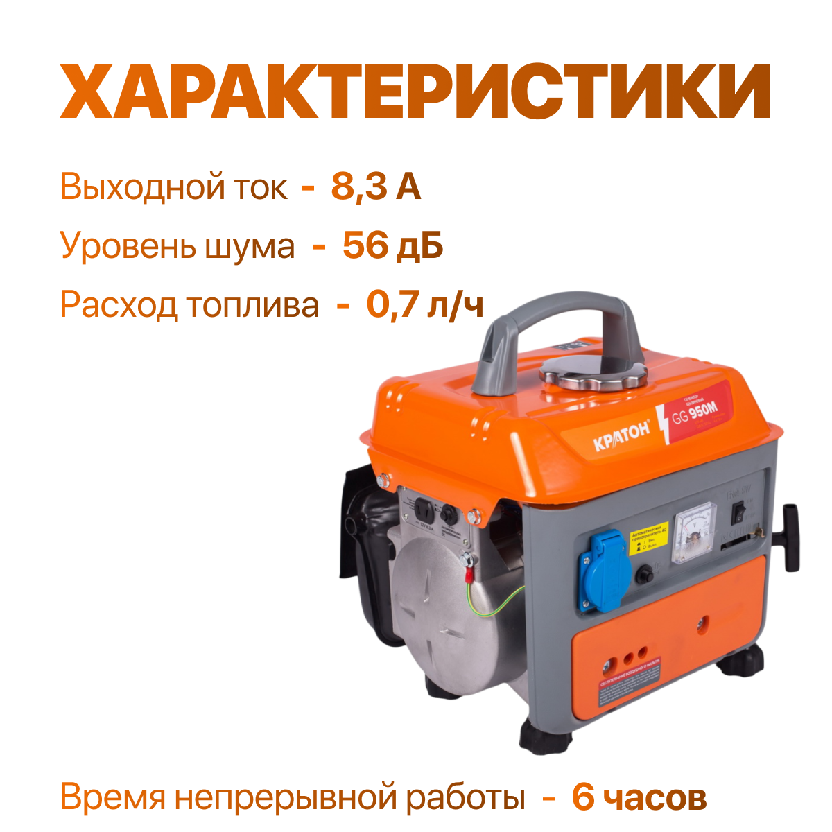 Генератор бензиновый Кратон GG-950M, 700 Вт, однофазный, ручной стартер интересное: