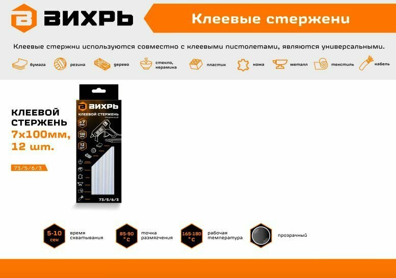 Клеевой стержень Вихрь 7х100мм, 12шт., 73/5/6/3 интересное: