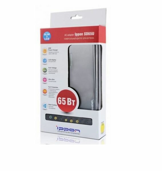 Блок питания IPPON SD65U автоматический 65W 15V-19.5V 11-connectors 1xUSB 2.1A от бытовой электросети LСD индикатор интересное: