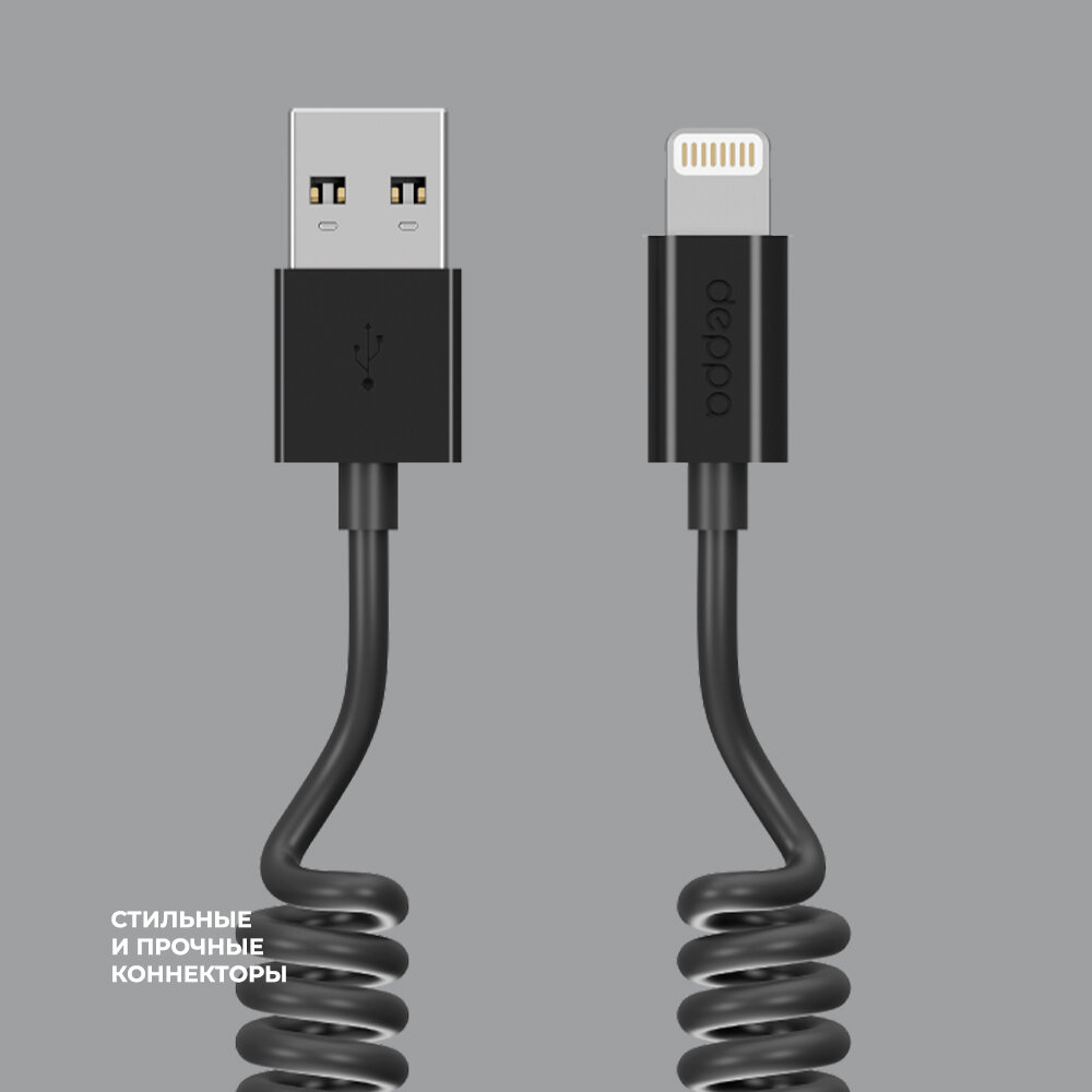 Кабель для телефона USB - Lightning, витой, 1.5м, черный, Deppa 72121-OZ/ Без заводской упаковки интересное: