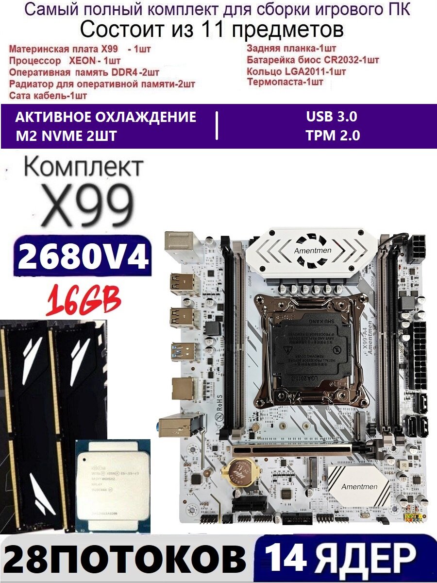 Х99A4,Комплект игровой XEON E5-2680v4+16gb DDR4