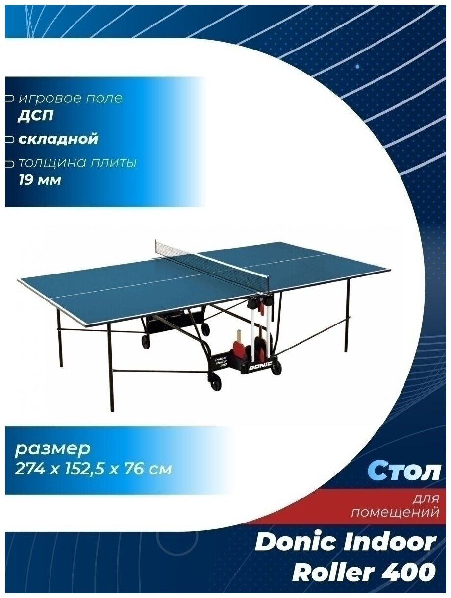 Теннисный стол для помещений DONIC INDOOR ROLLER 400 BLUE