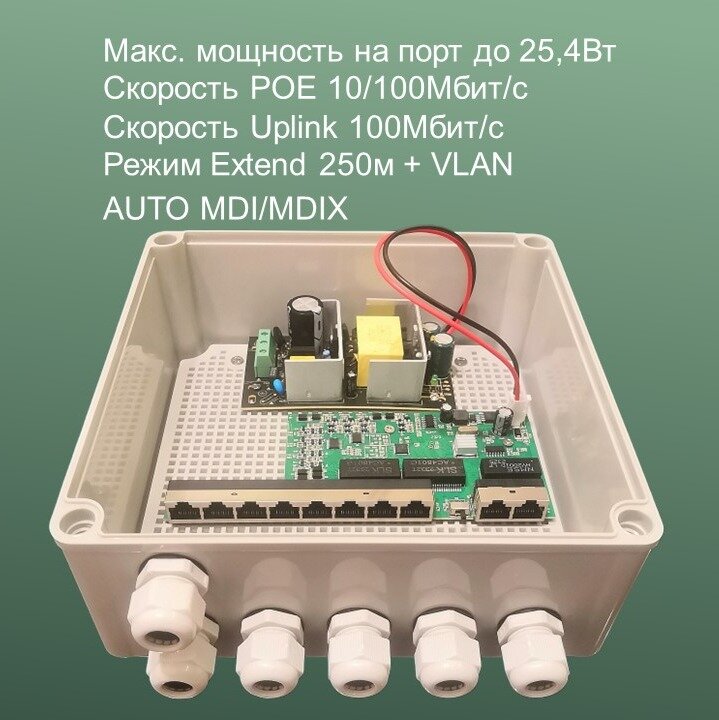 Уличный POE(свитч) 4POE+2Uplink,100 Мбит/с, WatchDog, Бюджет 65 Ватт,switch IC REALTEK