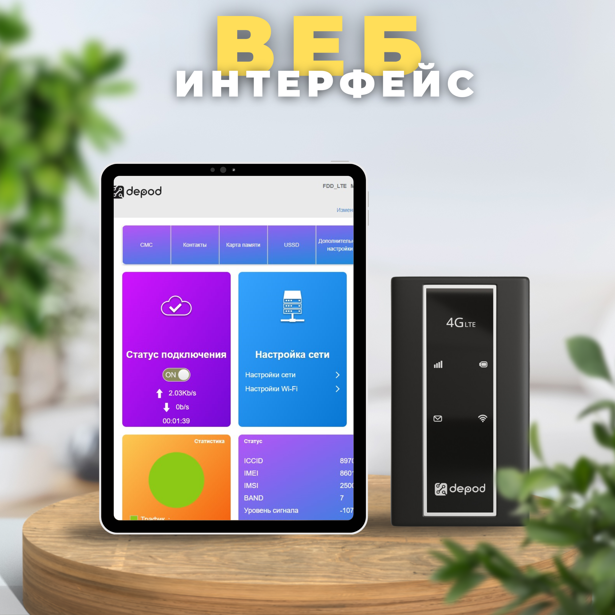Depod Роутер Wi-Fi роутер, 4g модем, Depod Rocket, для любых сим-карт для любых тарифов