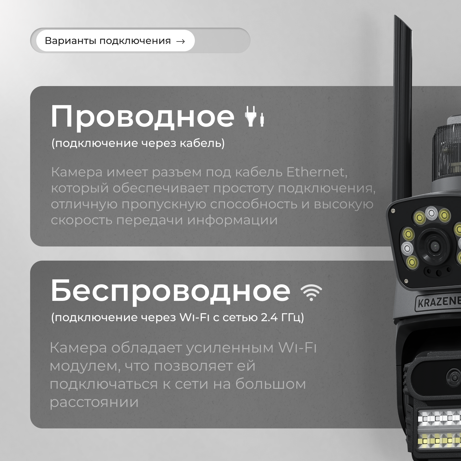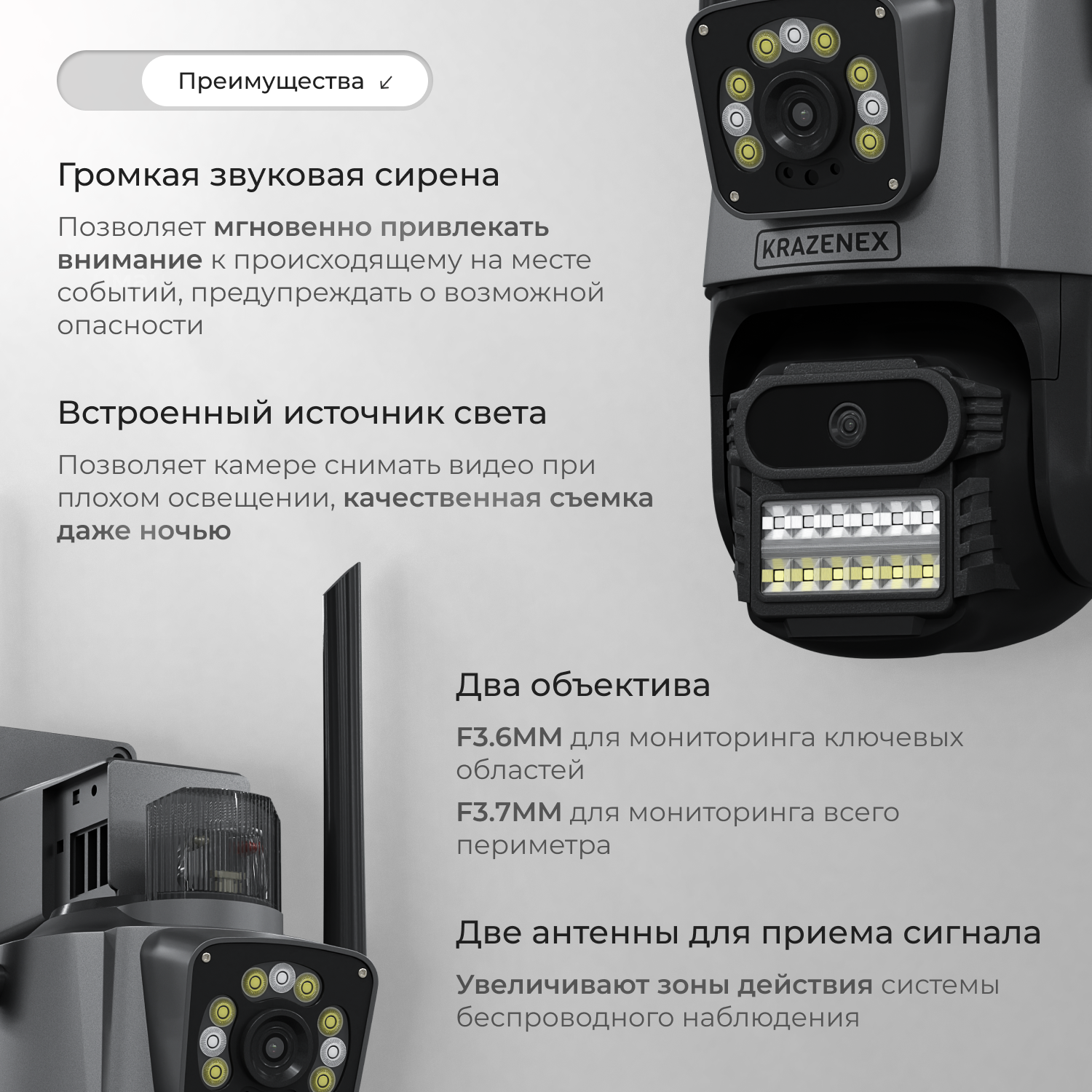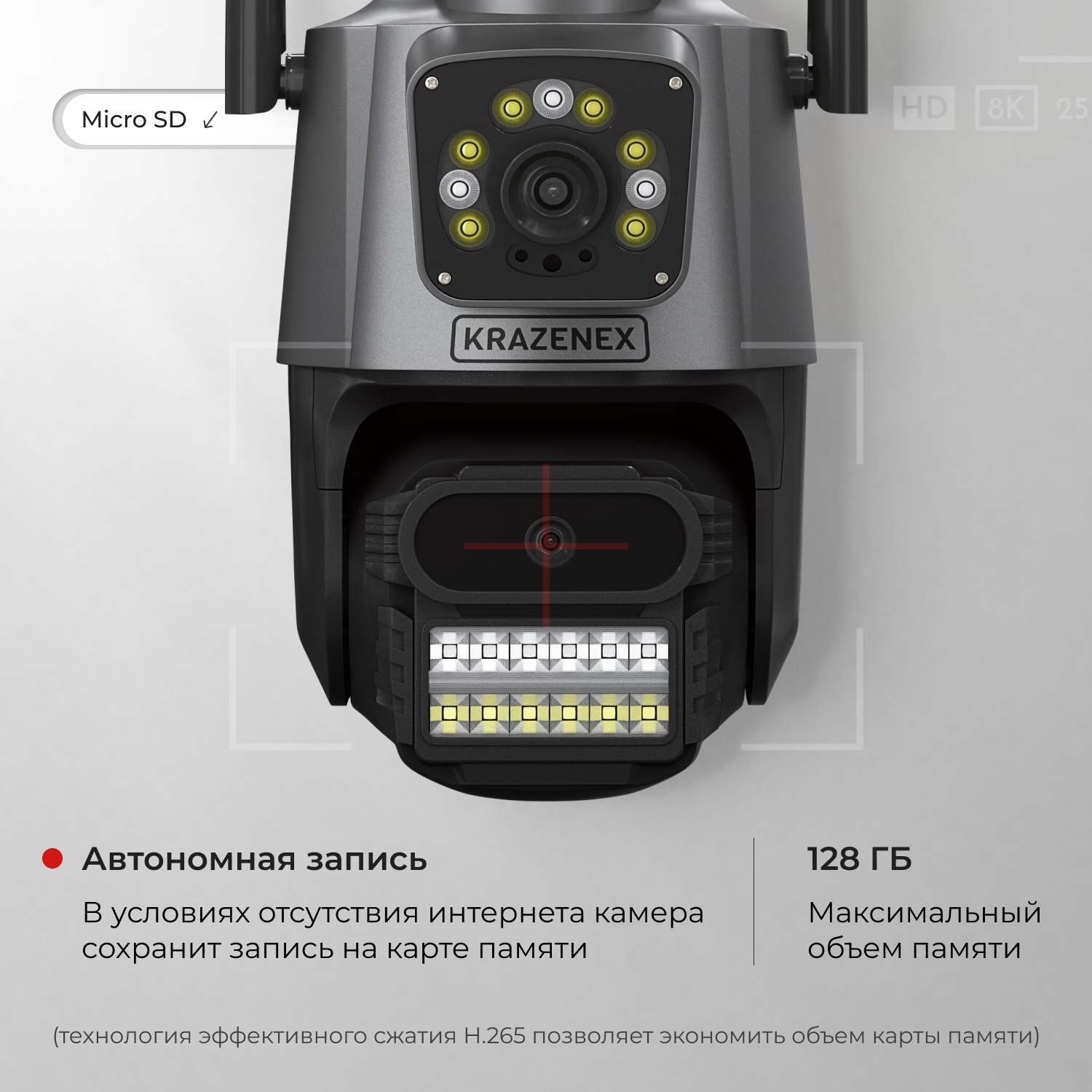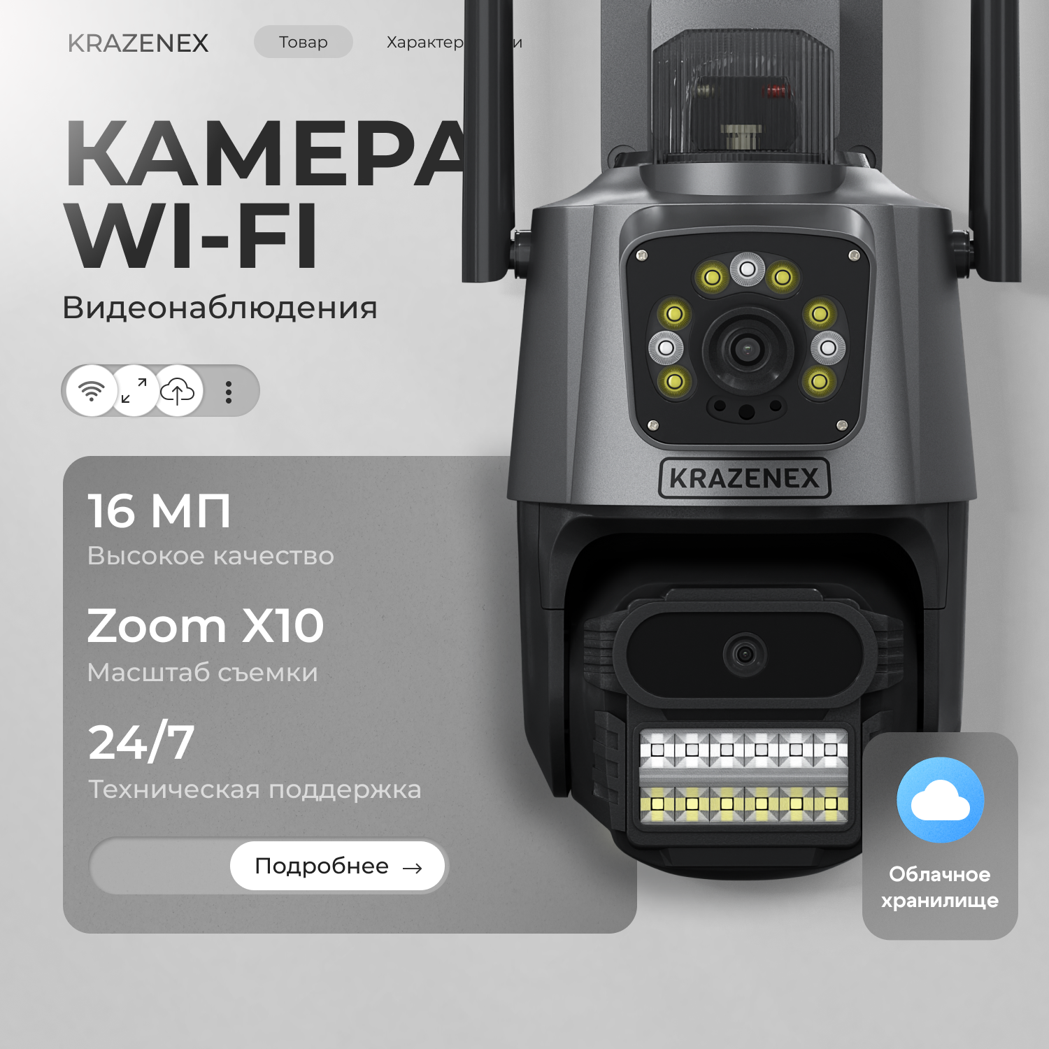 Камера видеонаблюдения KRAZENEX, уличная, 16МП, поворотная, IP, с детектором движения интересное: