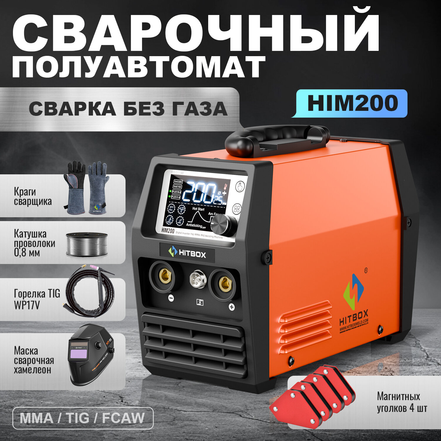 Сварочный полуавтомат без газа HITBOX HIM200 4 в 1(ММА/MIG БЕЗ ГАЗА /LIFT TIG/Поддержка подачи проволоки с пистолетом)