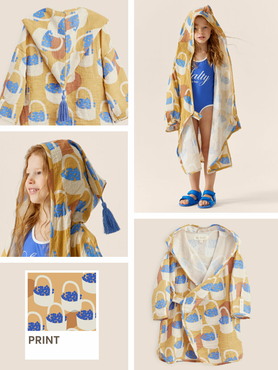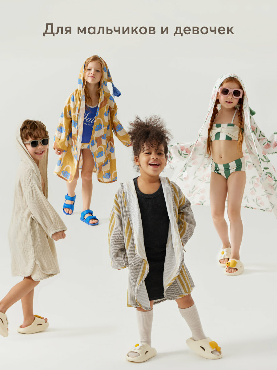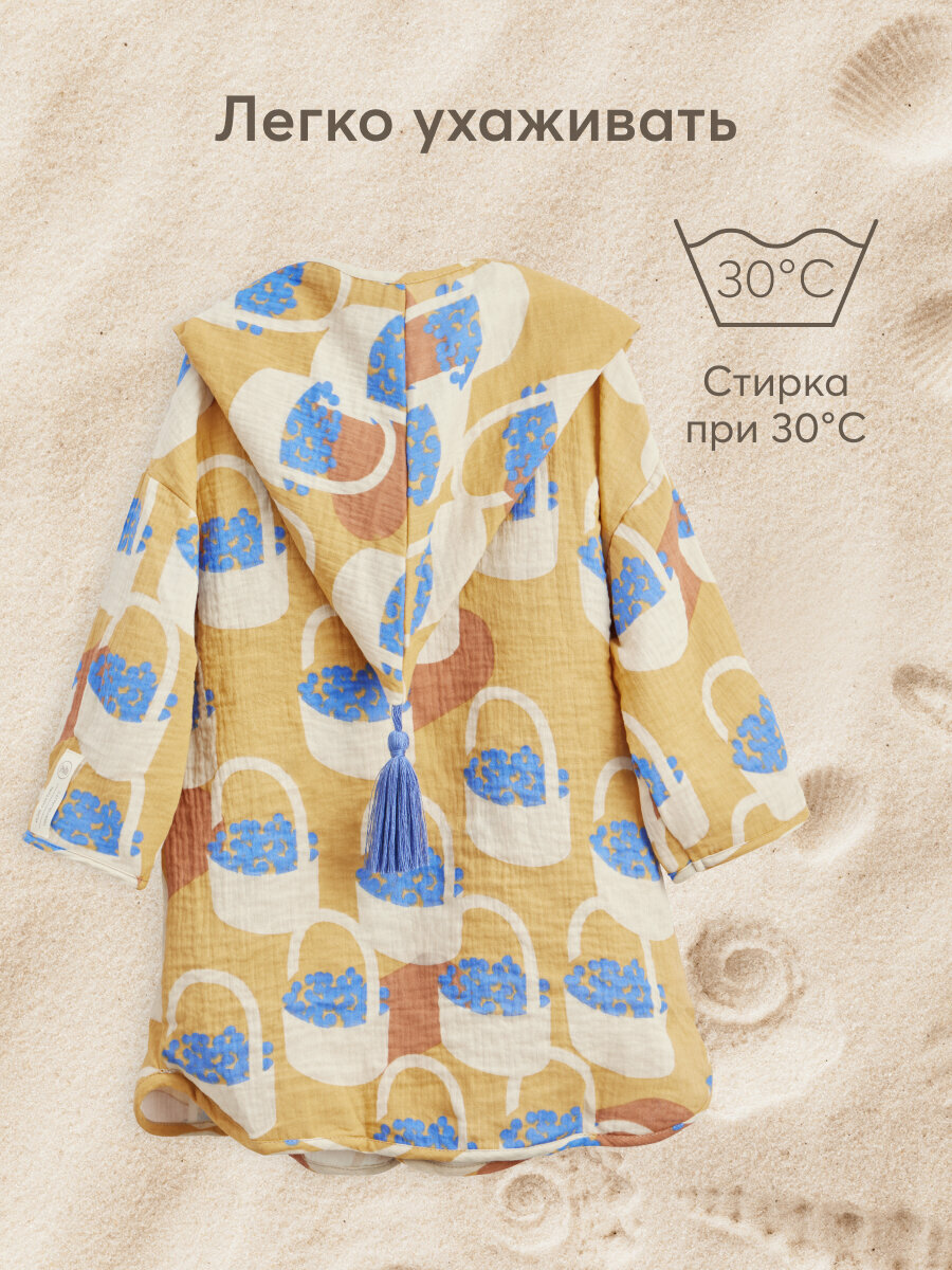 88129, Халат детский хлопок Happy Baby, муслиновый халат для девочки и мальчика, туника пляжная детская, коричневый с цветами, рост 86-92 интересное: