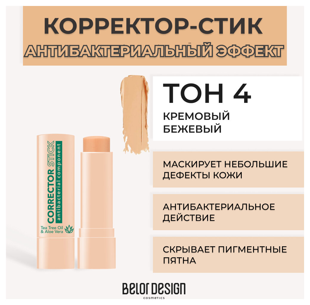 Belor Design Корректор для лица с антибактериальным компонентом тон 4 4,5 г