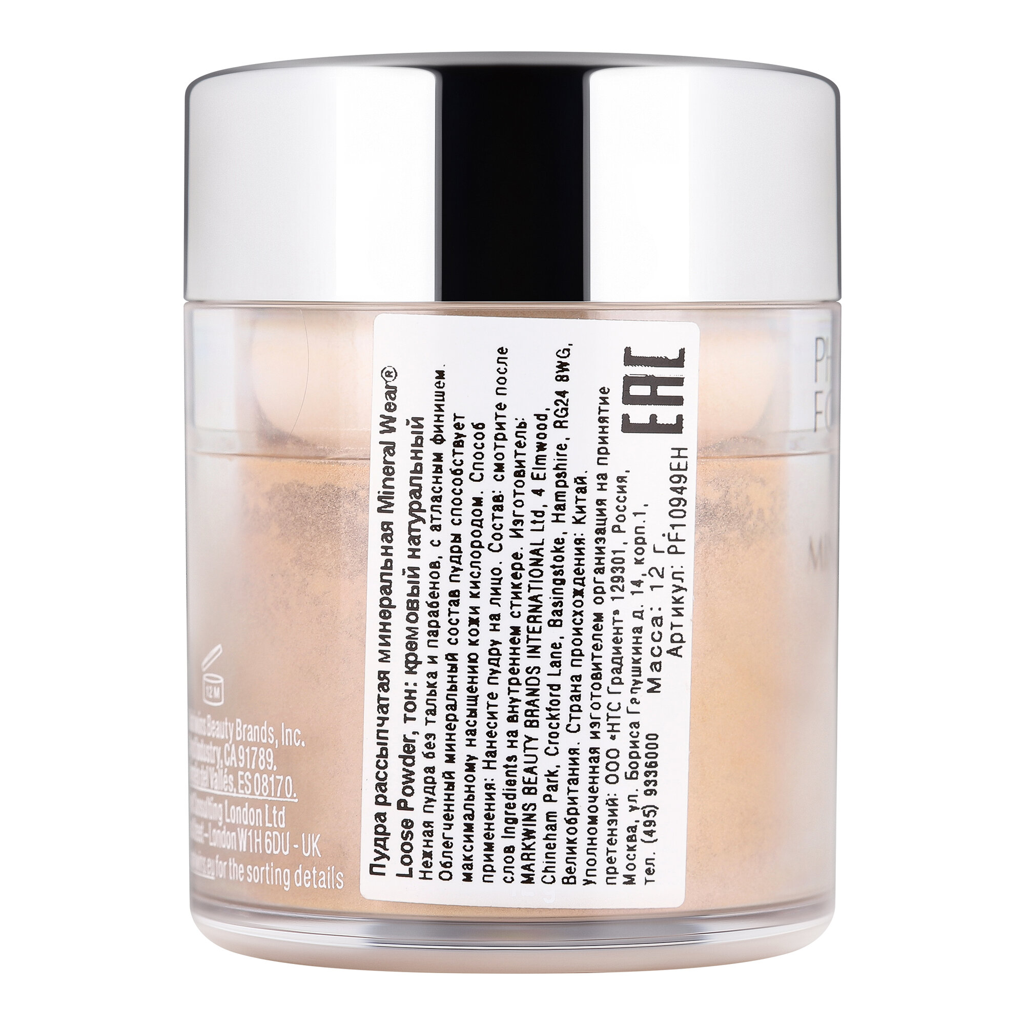 Пудра Physicians Formula Make Up Mineral Wear Loose Powder SPF 15, Пудра рассыпчатая минеральная SPF 15, Прозрачный