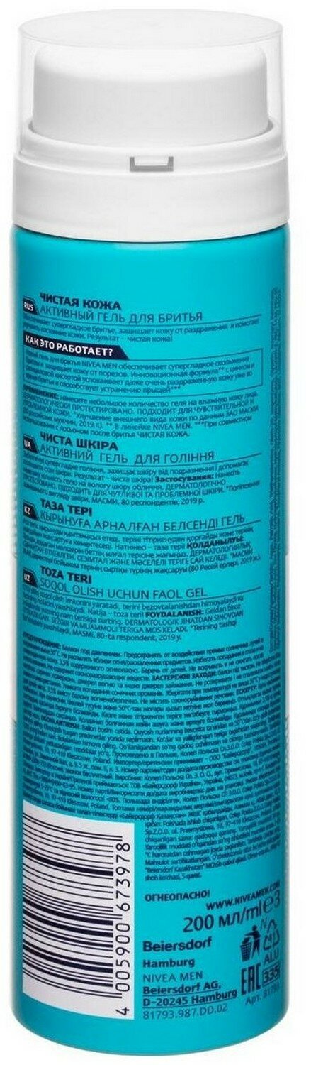 Гель для бритья Nivea Men "Чистая Кожа" для проблемной кожи с цинком и салициловой кислотой, 200 мл