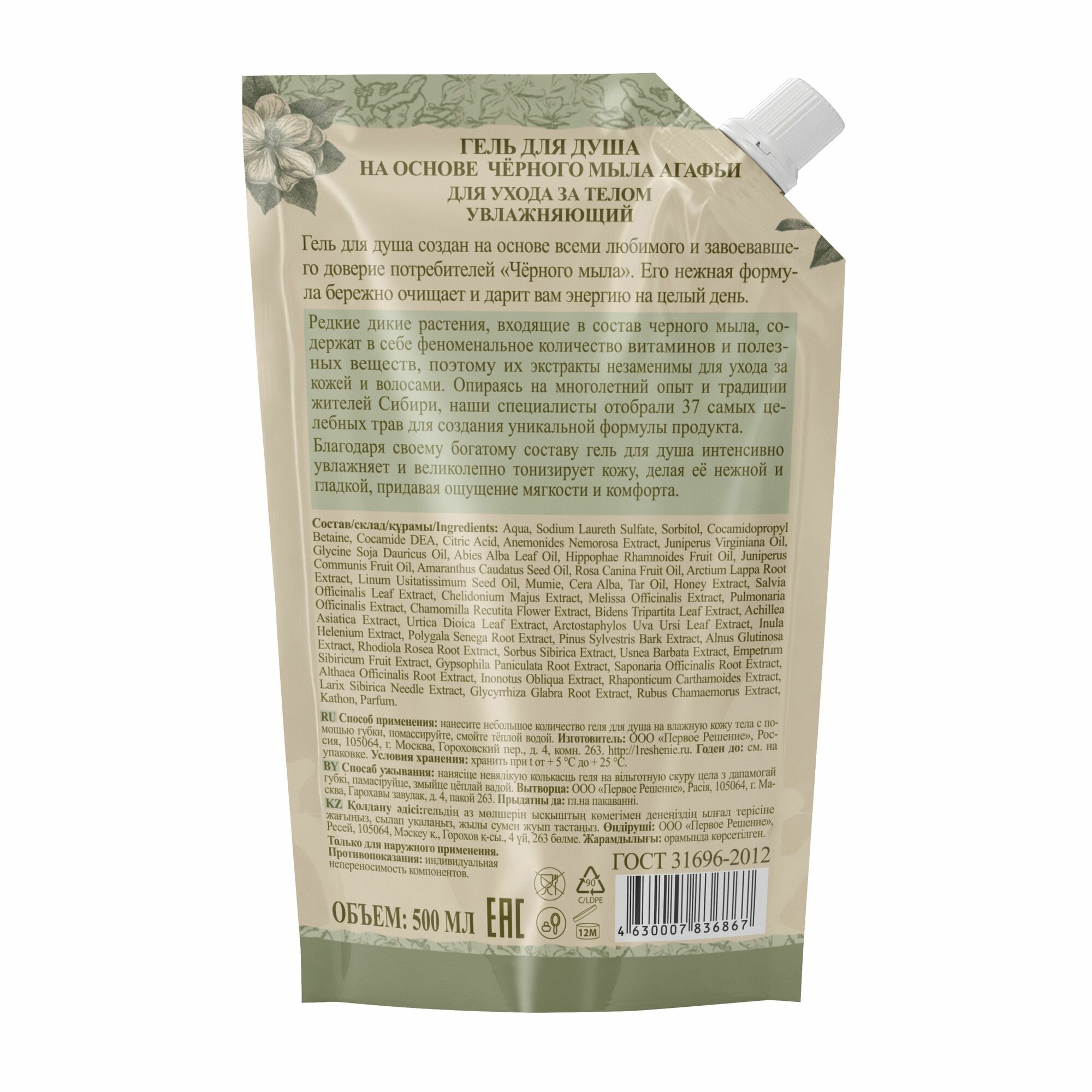 Травы и сборы на черном мыле Агафьи Гель для душа увлажняющий дой-пак 500 мл