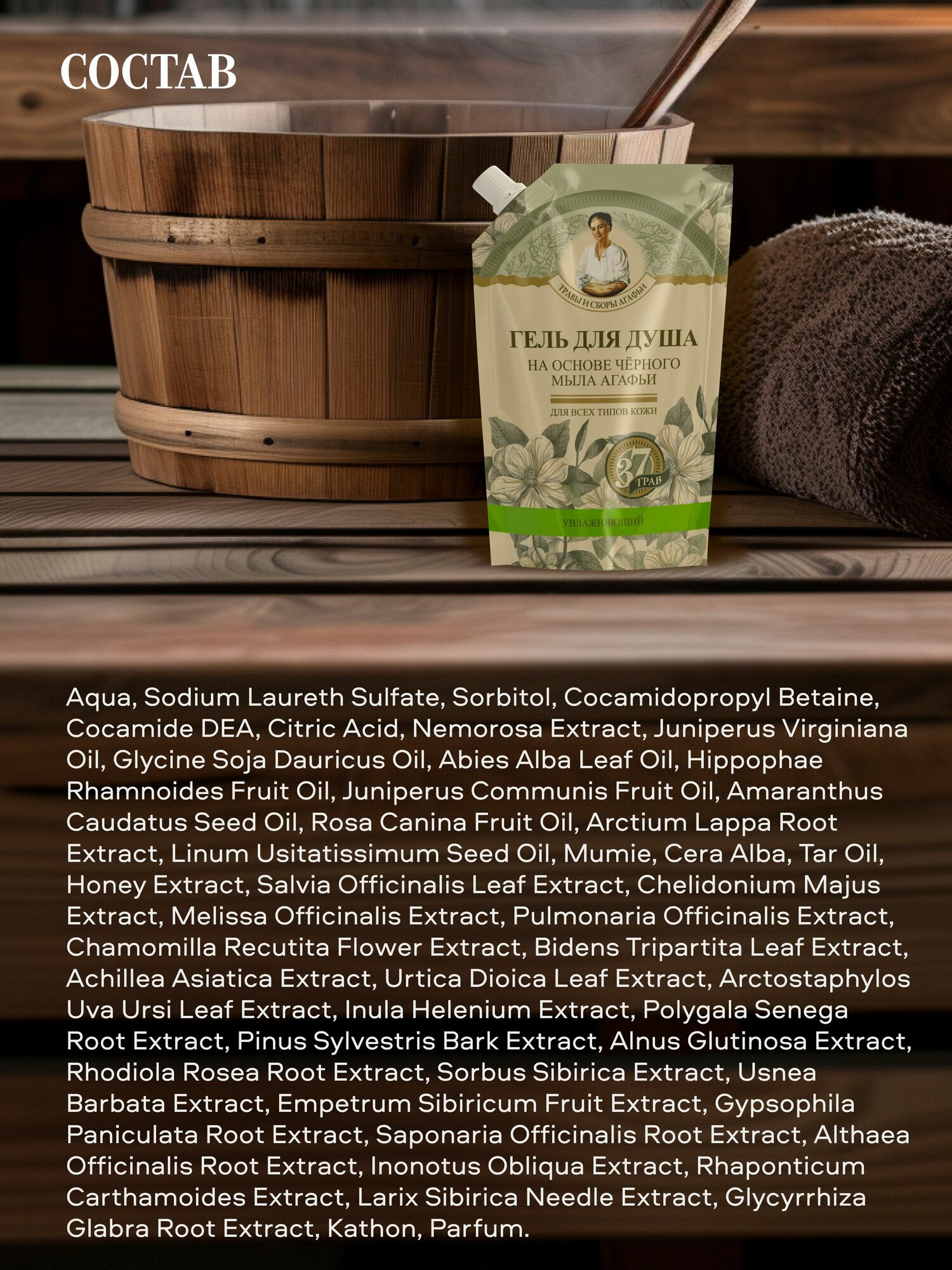 Рецепты бабушки Агафьи Травы и сборы Гель для душа увлажняющий на основе черного мыла для бани 500 мл