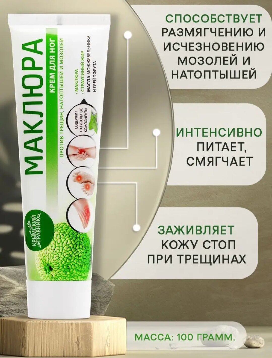 Крымский травник Маклюра Крем для ног Против трещин, натоптышей и мозолей, 100 мл, 100 г интересное: