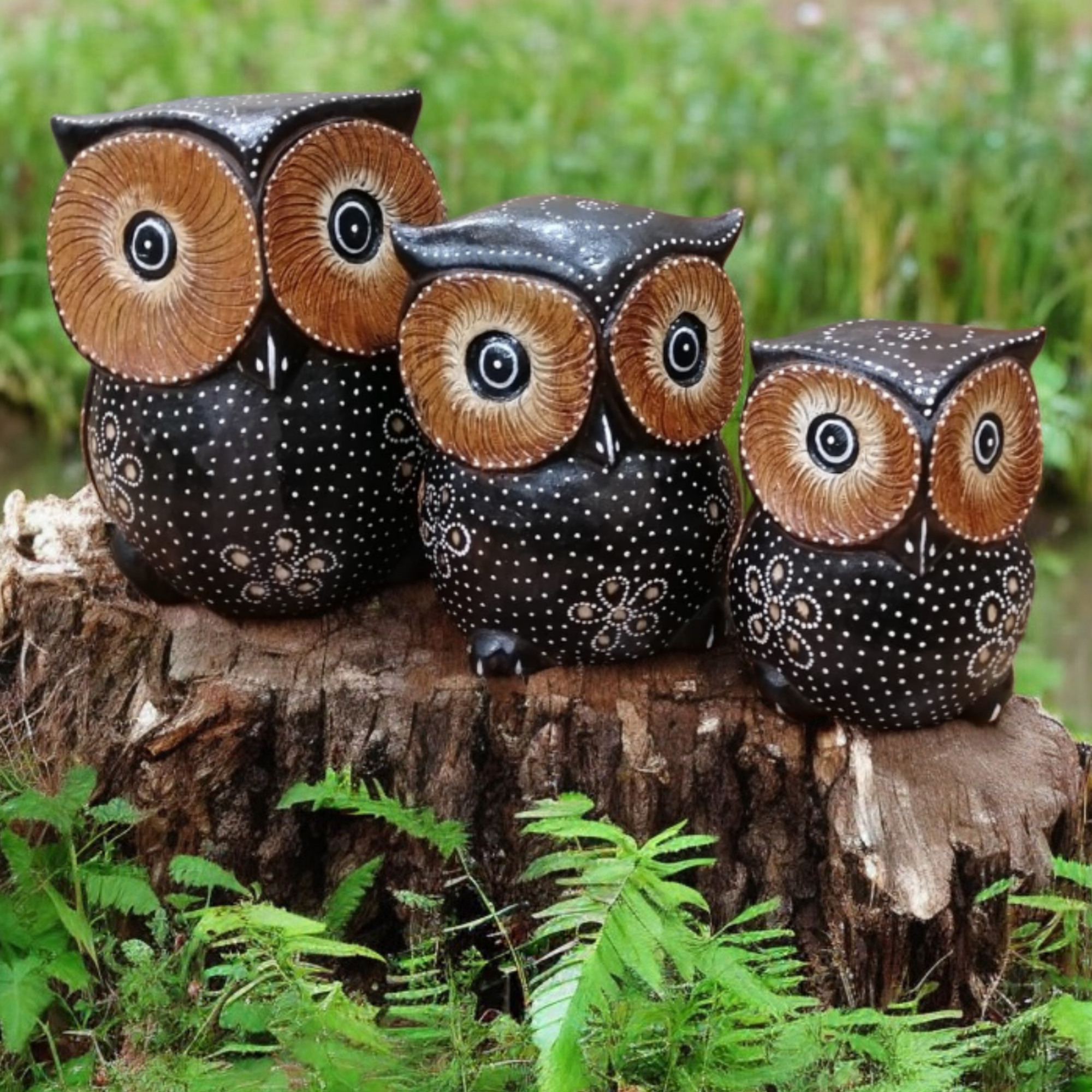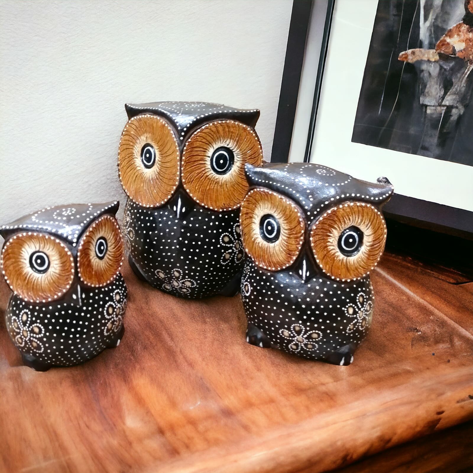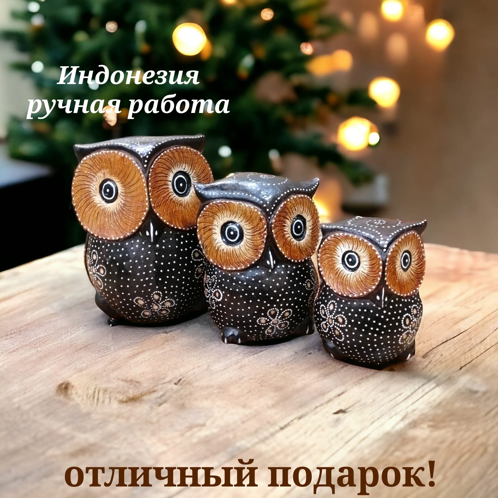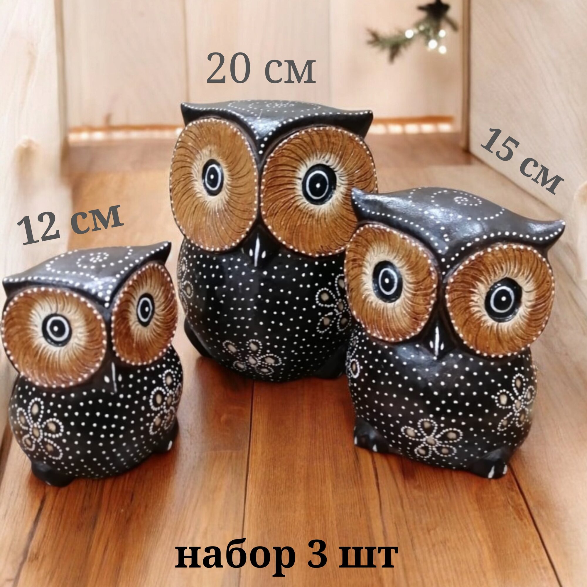 Деревянные статуэтки Совы 10, 12, 15 см Набор 3 шт. Ручная работа (Индонезия)статуэтка сова набор 3 шт