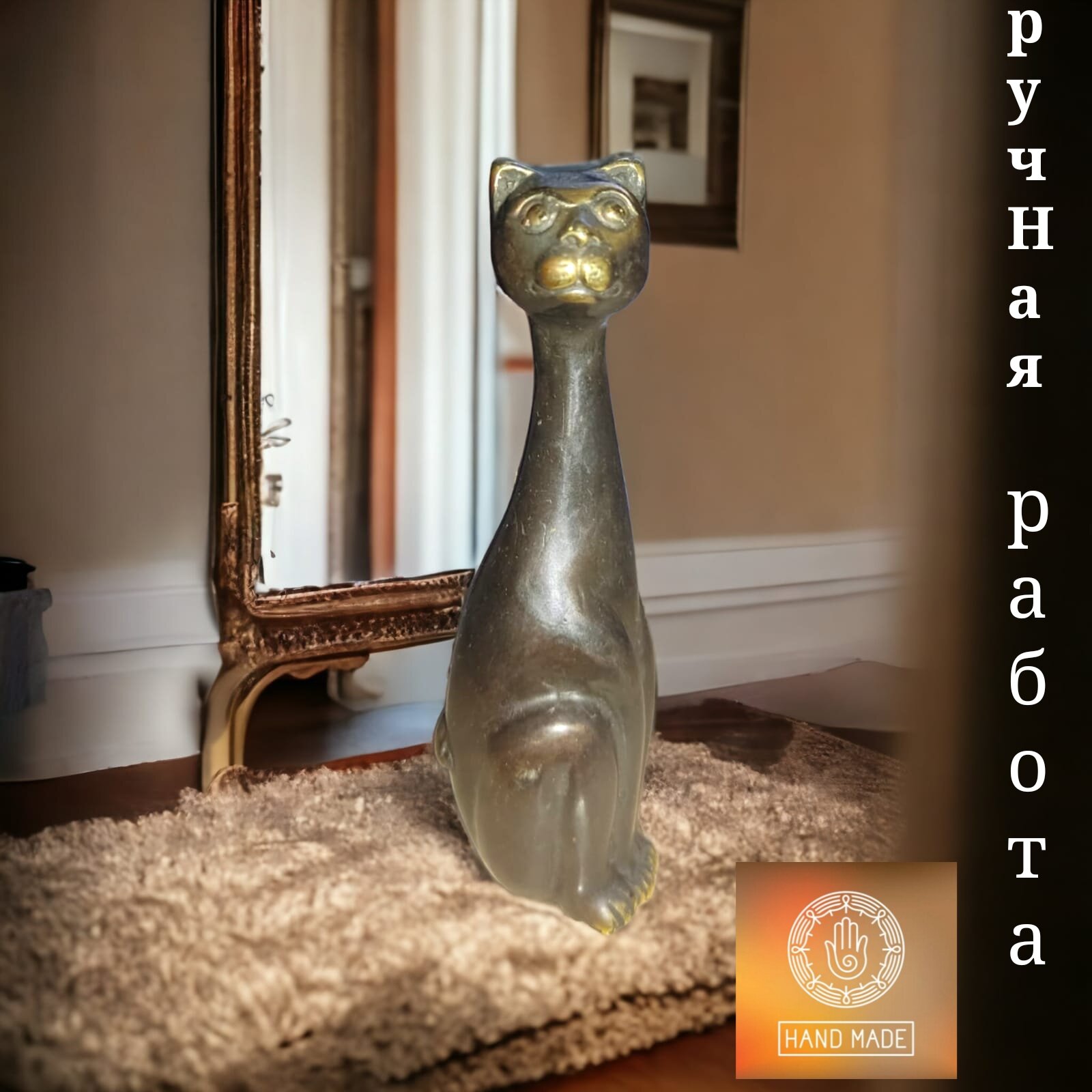 Статуэтка интерьерная "Кошка", Индонезия, ручная работа, бронзовая, 12 см интересное: