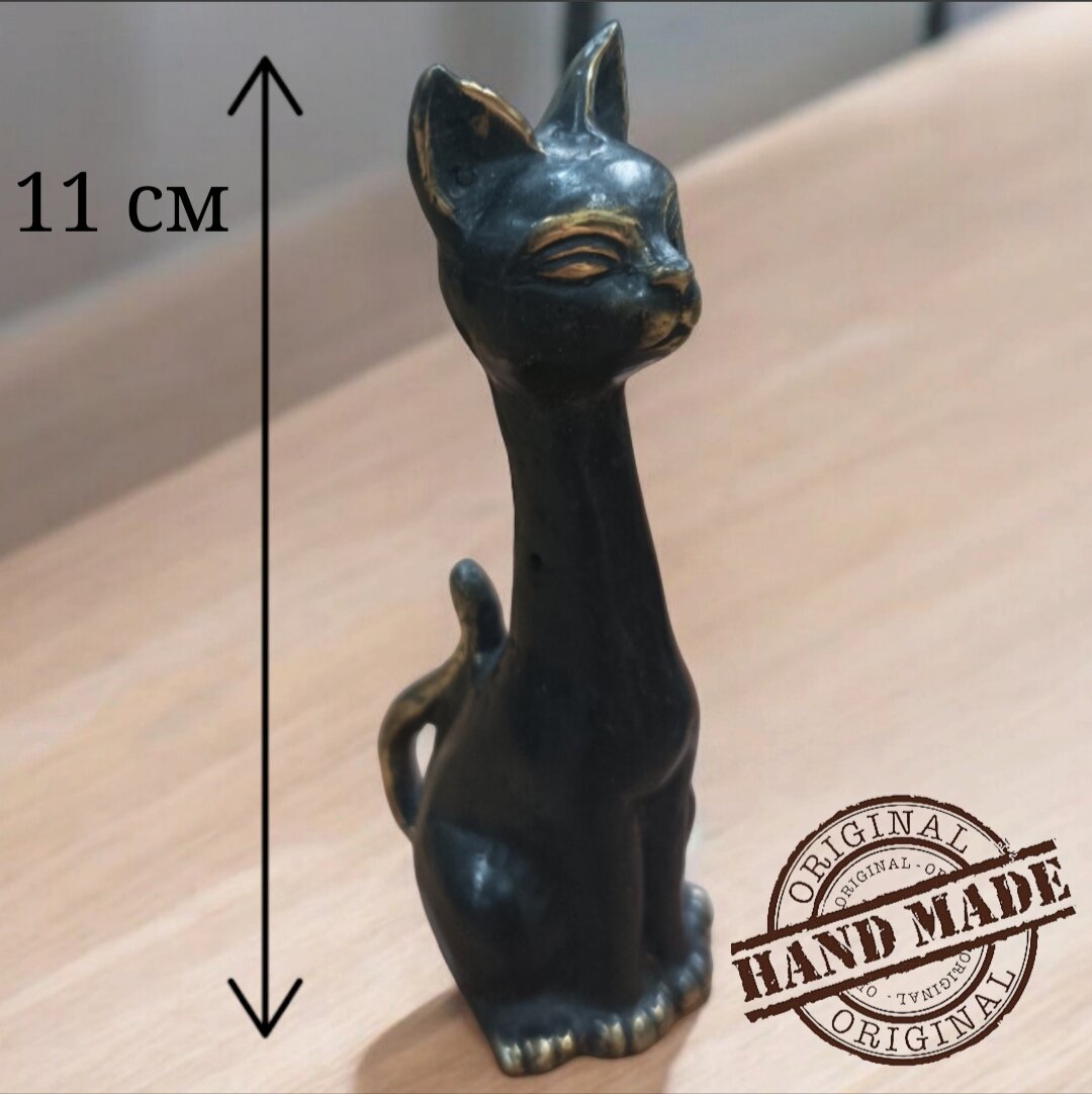 Статуэтка интерьерная "Кошка" Vittovar, ручная работа, металл, бронза, Индонезия 11 см интересное: