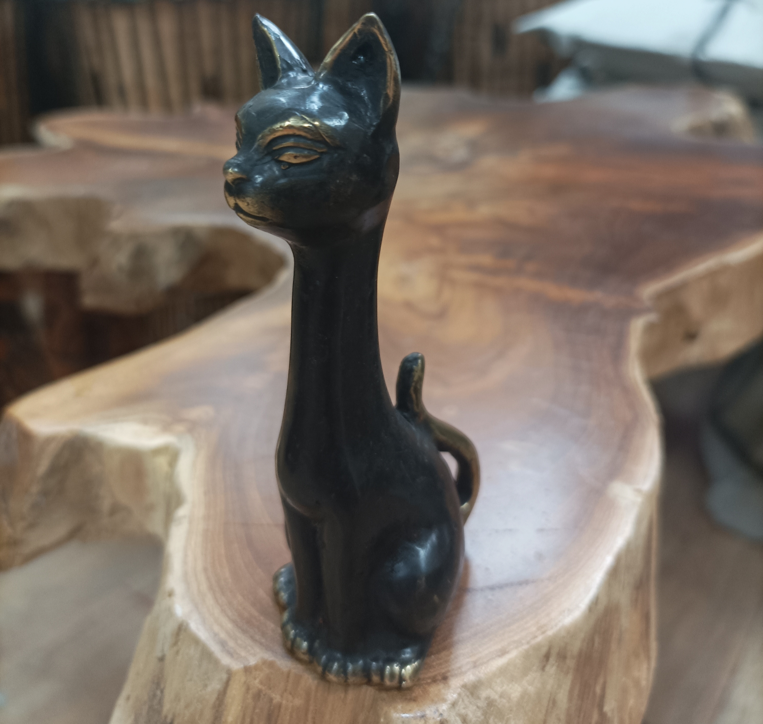 Статуэтка интерьерная "Кошка", Индонезия, ручная работа, бронзовая, 12 см