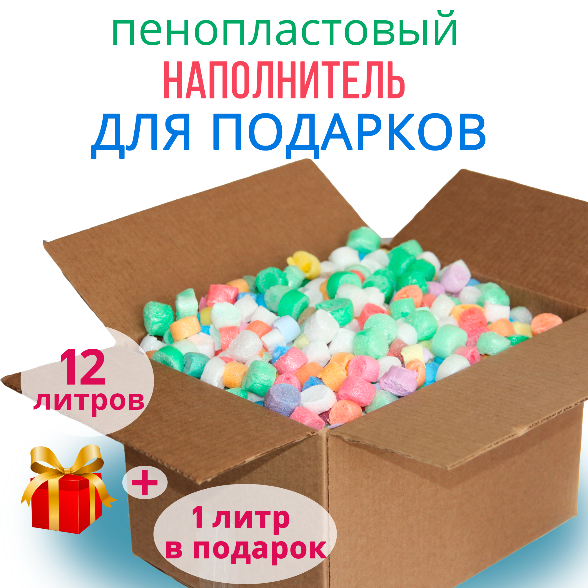 Купить Наполнитель пенопластовый Яркий 12 л (пенополистирольный ) упаковочный праздничный разноцветный для подарков и коробок
