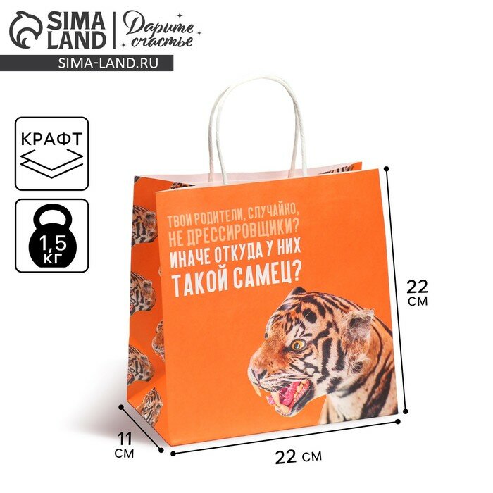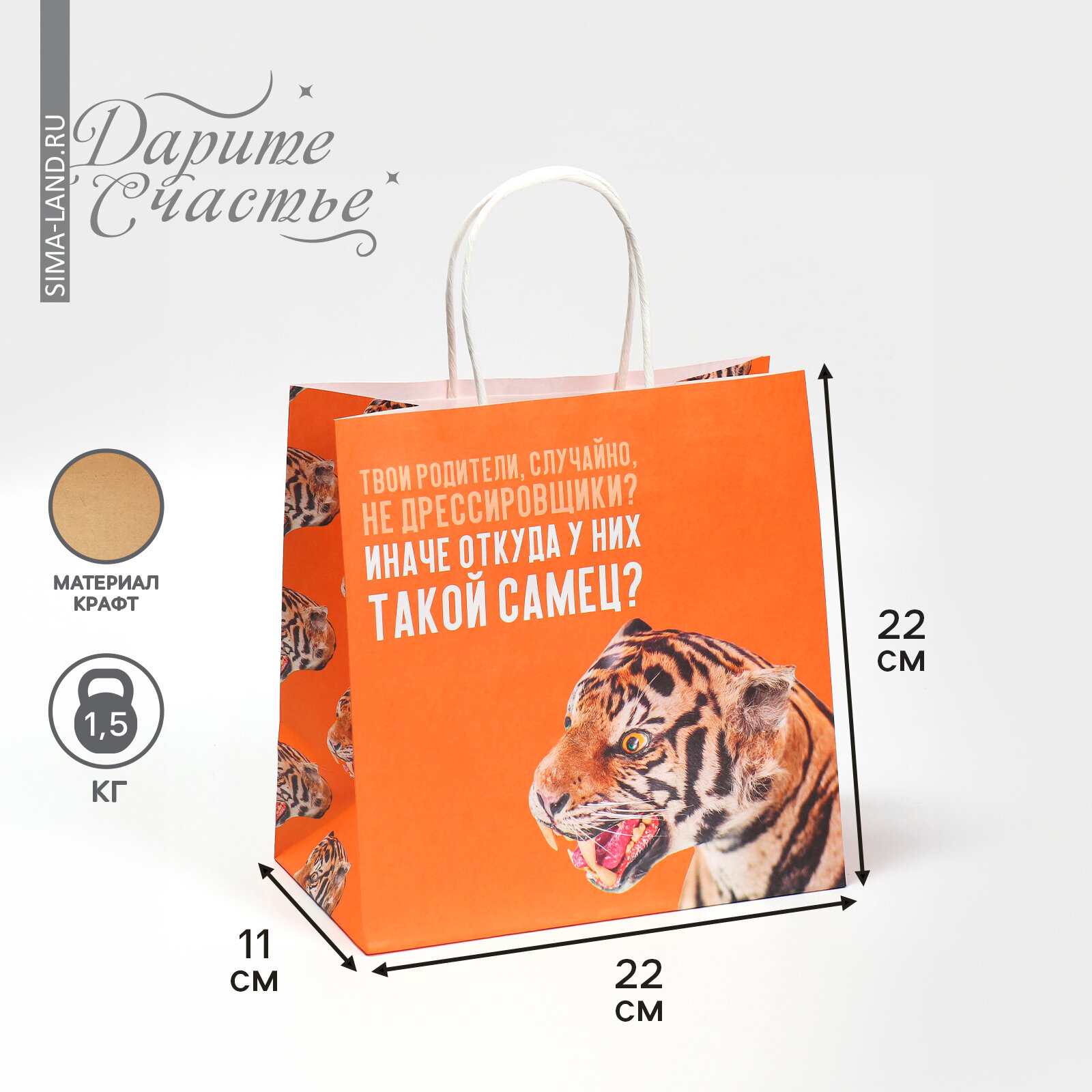 Купить Пакет подарочный мужской с приколом «Самец», 22 х 22 х 11 см, для упаковки подарка