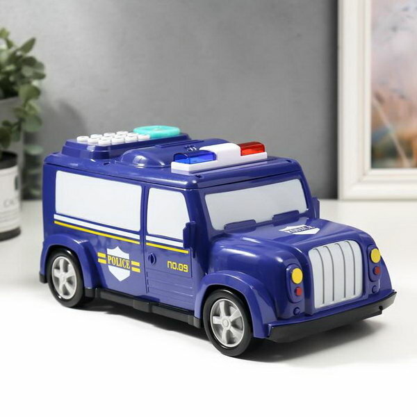 Купить Копилка пластик для монет и купюр "Автомобиль полиция" отпечаток пальца 12х27х13 см