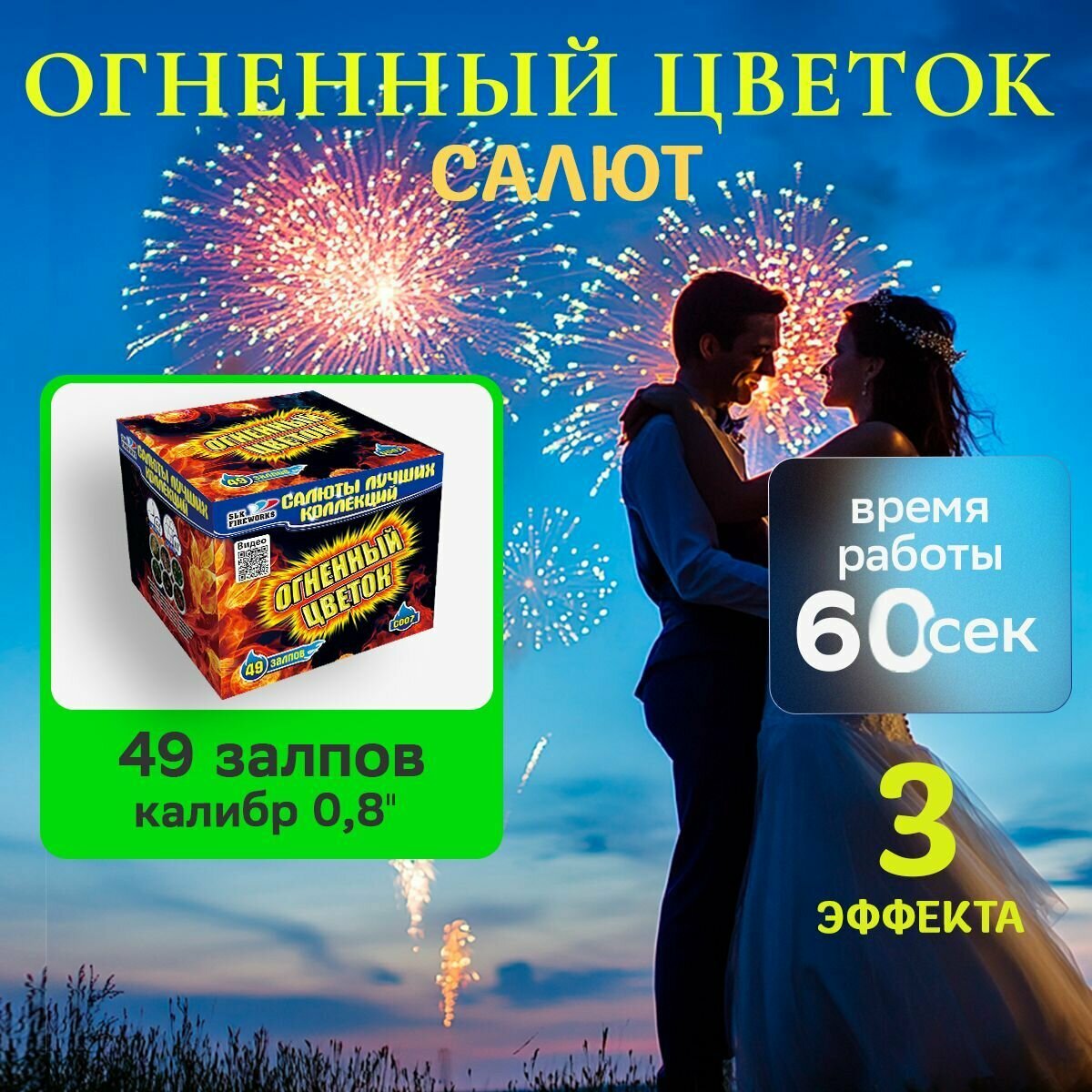 Купить Салют Фейерверк новогодний для праздников и свадеб "Огненный цветок", батарея 49 залпов, калибр 0,8"