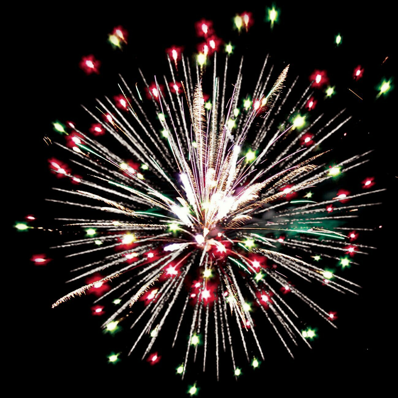 | Эффекты | разноцветные кометы разрываются сферами из: 1. серебряных форсов с красными огнями на концах и белых мерцающих огней; 2. золотых искристых форсов и синих огней; 3. серебряных форсов с зелеными огнями на концах и красных мерцающих огней; 4. золотых искристых форсов и белых мерцающих огней; 5. золотых искристых мерцающих форсов; 6. синих огней и множества трещащих серебряных искр; 7. золотых искристых форсов; 8. множества трещащих разлетающихся искр |