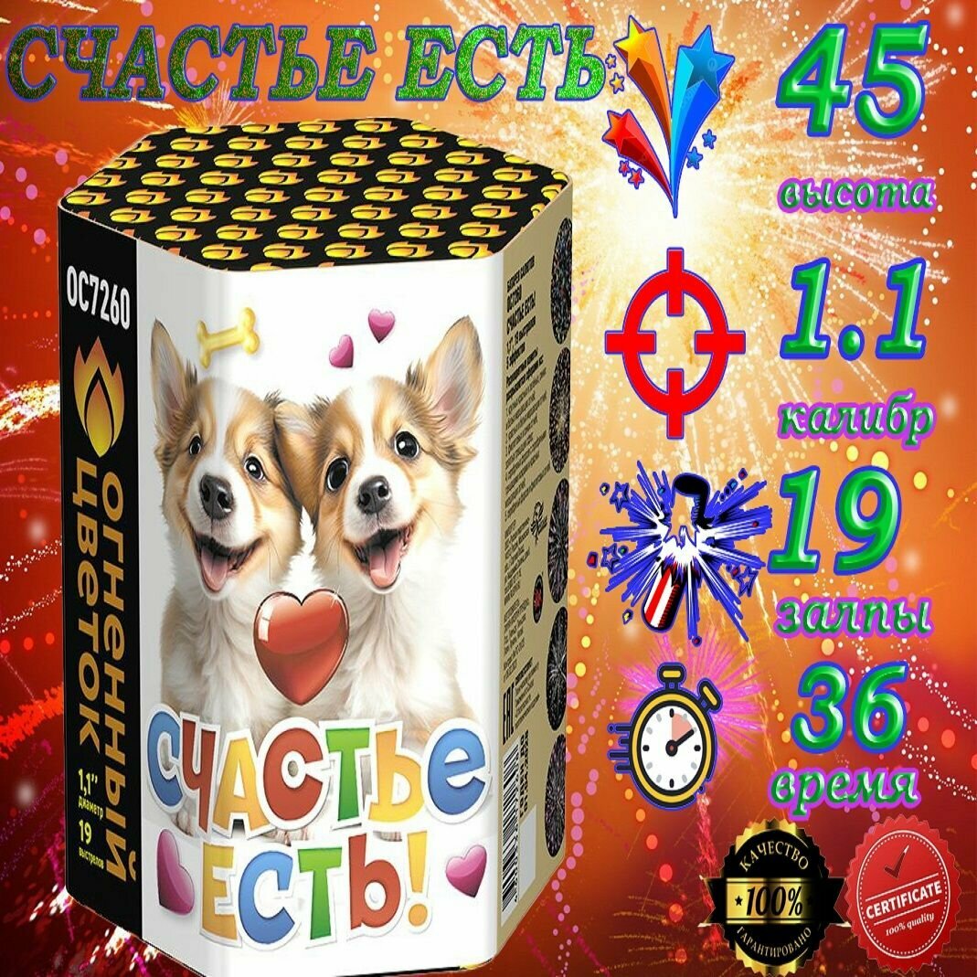 Батарея салютов и фейерверков "Счастье есть", калибр 1,1" / 19 залпов