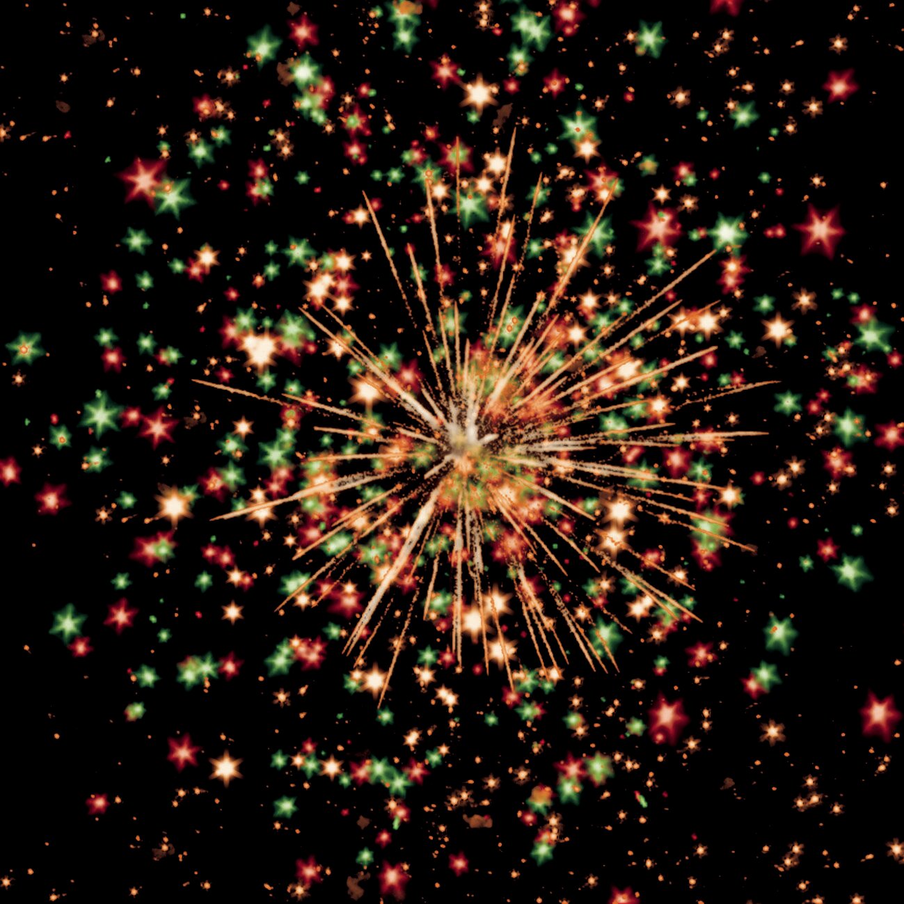 | Эффекты | 1. Разноцветные кометы разрываются сферами из красных и белых мерцающих огней. 2. Разноцветные кометы разрываются сферами из фиолетовых и зелёных мерцающих огней. 3. Разноцветные кометы разрываются сферами из трещащих огней. 4. Разноцветные кометы разрываются сферами из множества трещащих сфер. |
