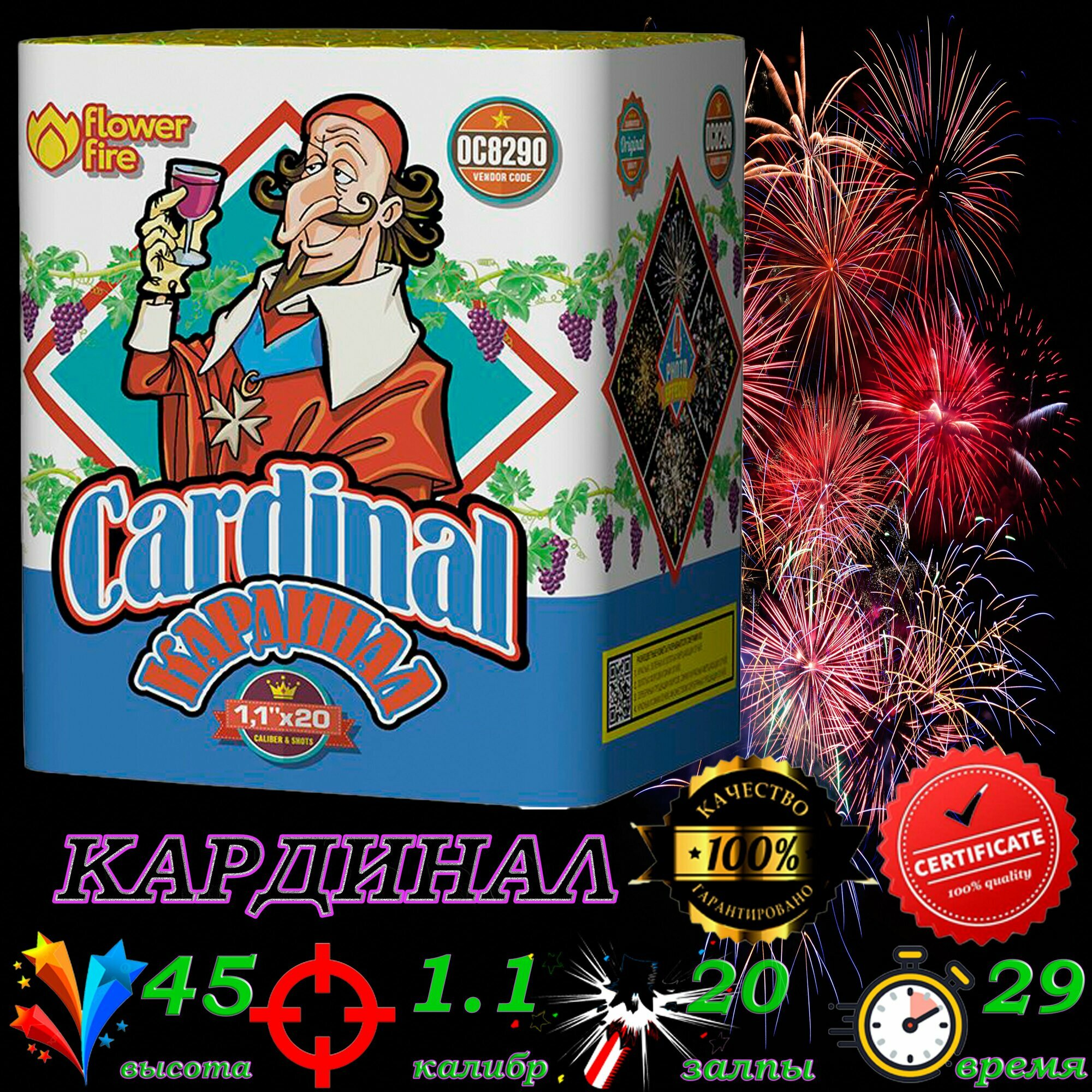 СохранитьФейерверк Салют "Кардинал / Cardinal" (20 залпов, калибр 1,1) Fire Flower интересное: