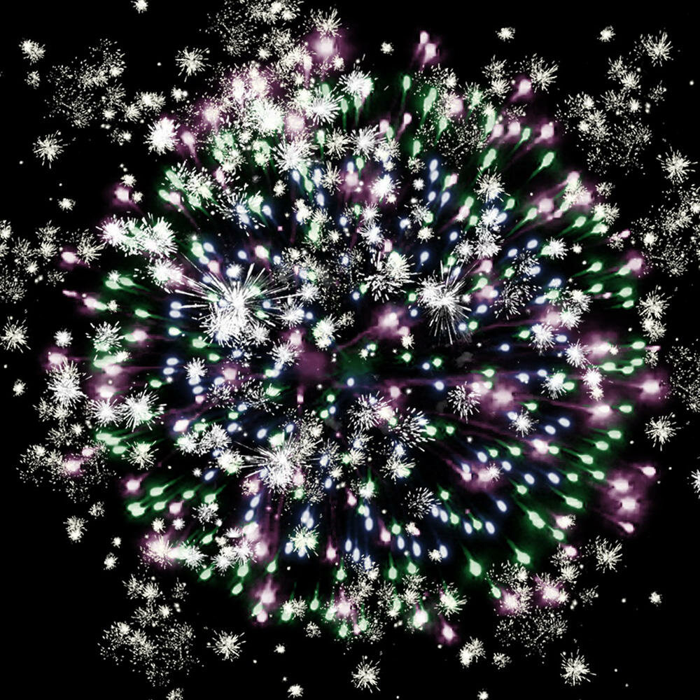 | Эффекты | 1. Разноцветные кометы разрываются сферами из красных и белых мерцающих огней. 2. Разноцветные кометы разрываются сферами из фиолетовых и зелёных мерцающих огней. 3. Разноцветные кометы разрываются сферами из трещащих огней. 4. Разноцветные кометы разрываются сферами из множества трещащих сфер. |