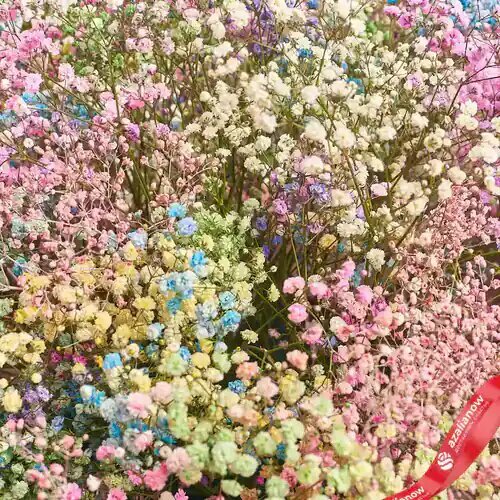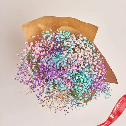 Яркий воздушный букет из 5 радужных гипсофил в крафте "Красивая форма" интересное:
