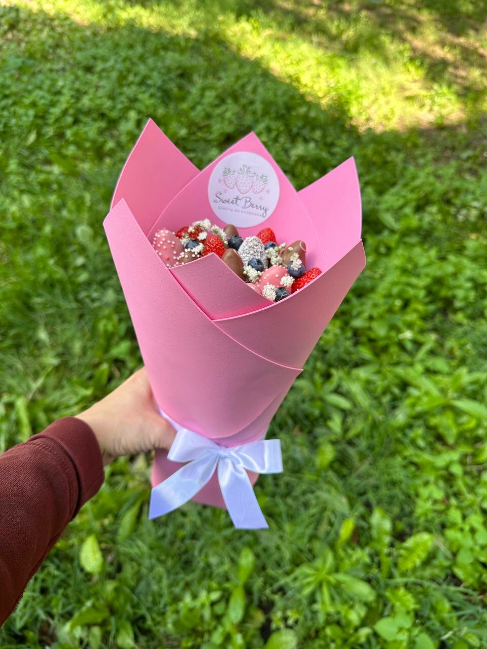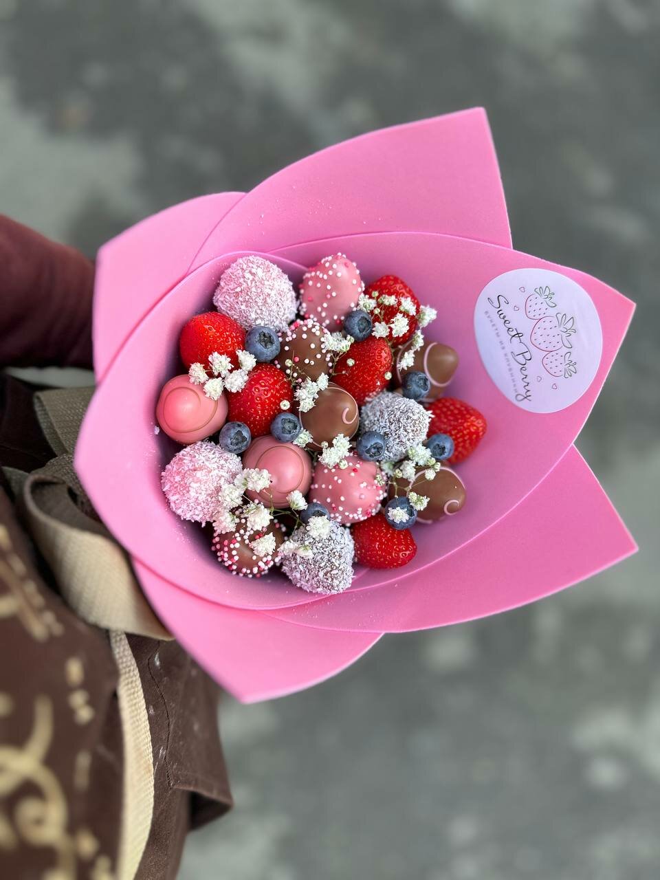 Букет из клубники в шоколаде с голубикой и гипсофилы - "Вдохновение" Sweet Berry
