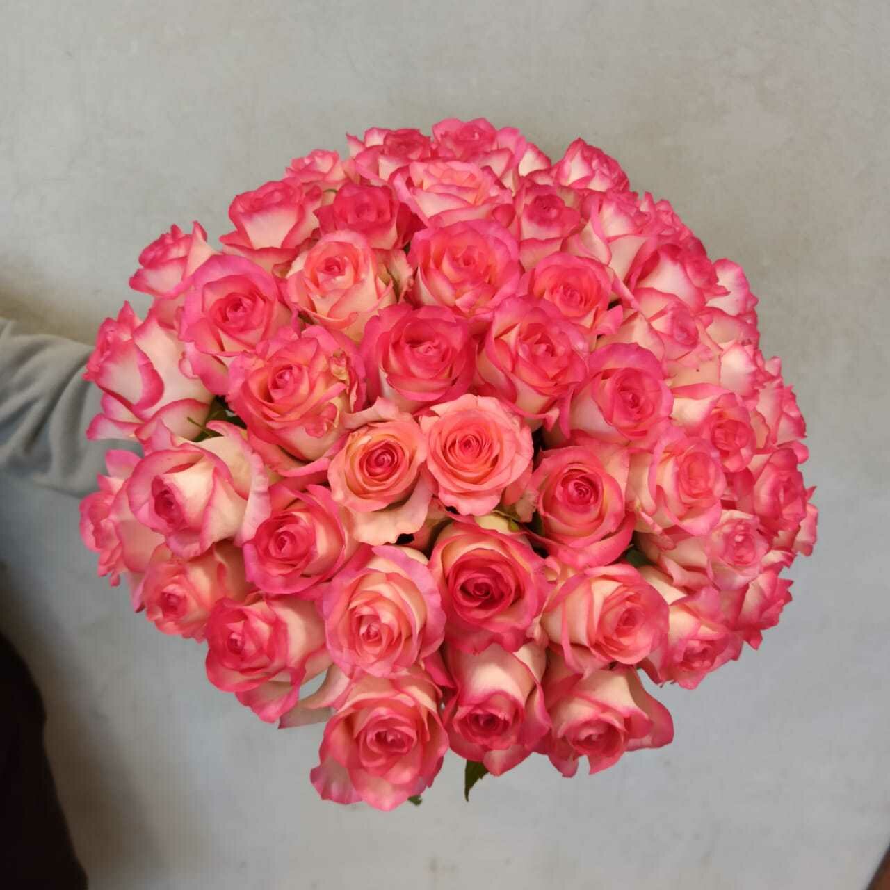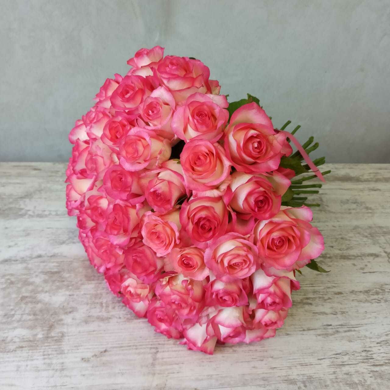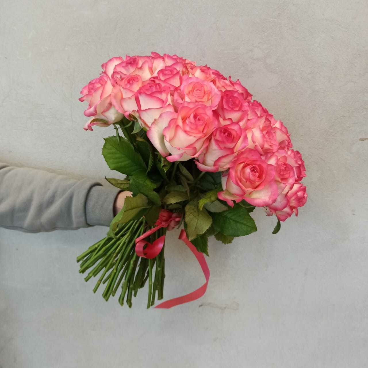 Купить Живые цветы букет роз 51 шт. 40 см. бело-розовый "С теплыми пожеланиями", Rurose